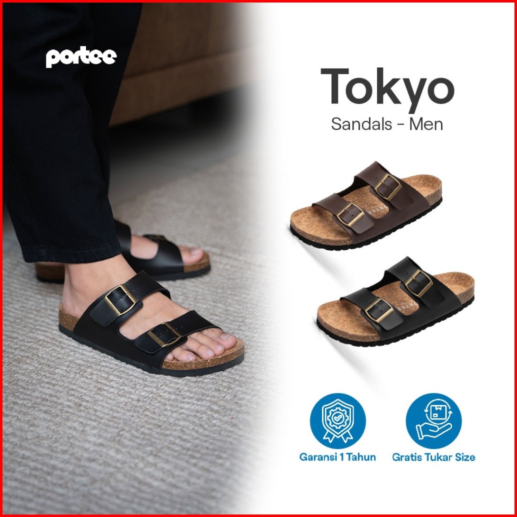 Sandal Pria Portee Tokyo Black Slop Mules Nyaman Santai Liburan Sandal Cork Men Sandal