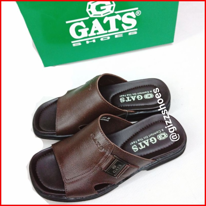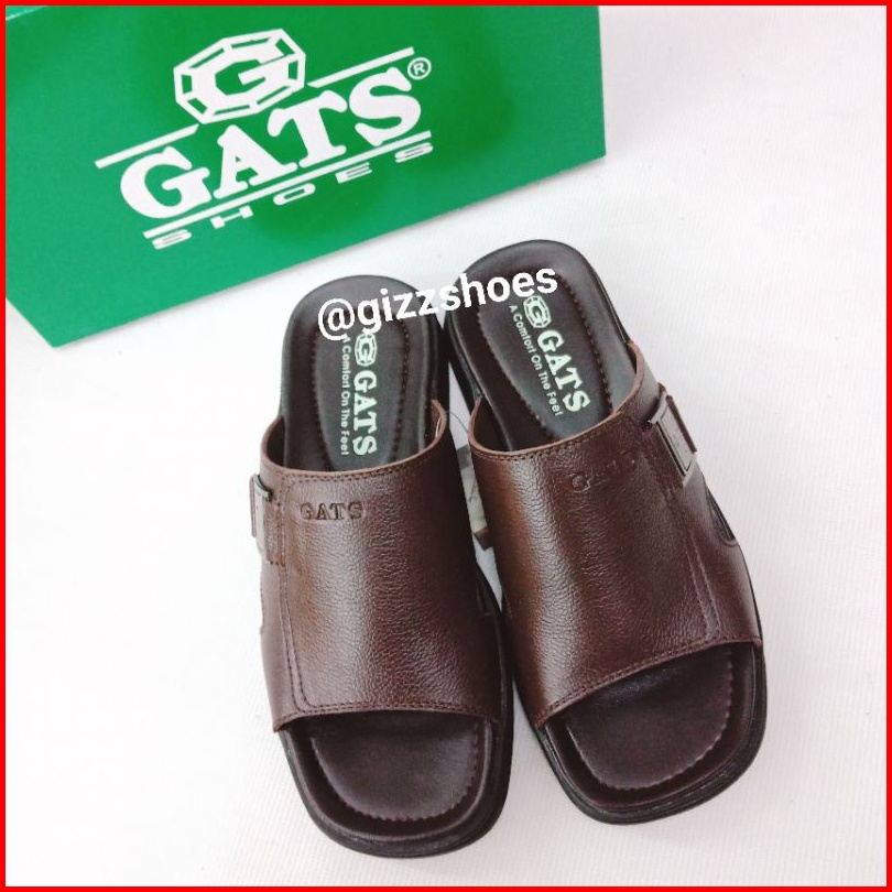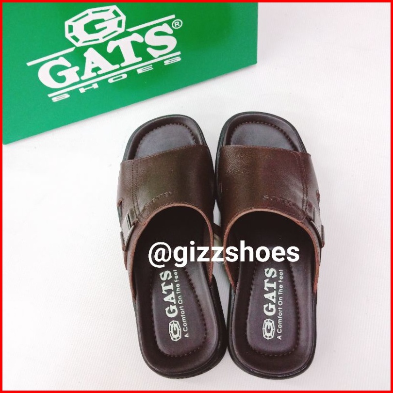 Gat S Gats Or-610 611 Sandal Slide Pria Cowok Laki-laki Kulit Leather Authentic Asli 100 Murah Hitam Black Coklat Brown