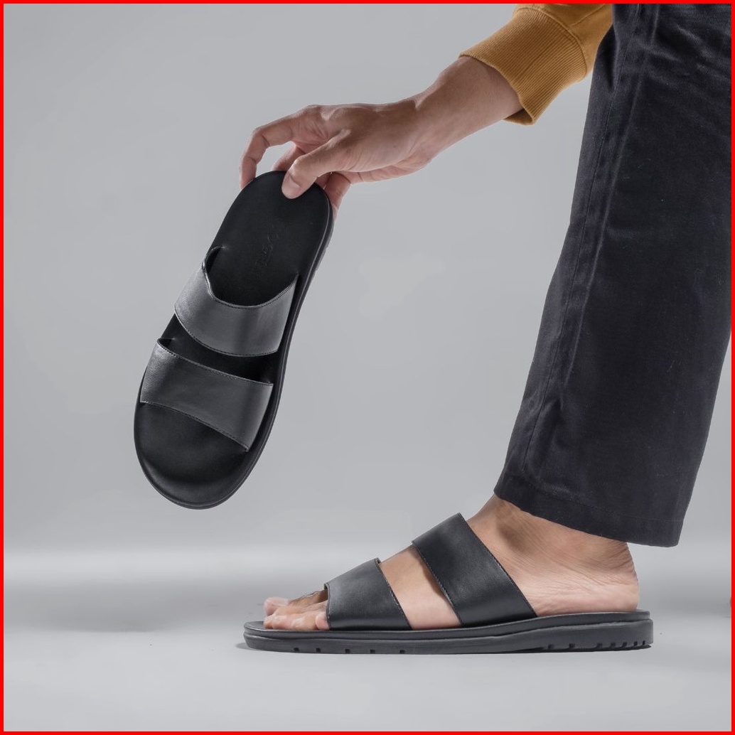Cogen Sendal Pria Slop Kulit Sandal Dua Ban Cowok Classic Series