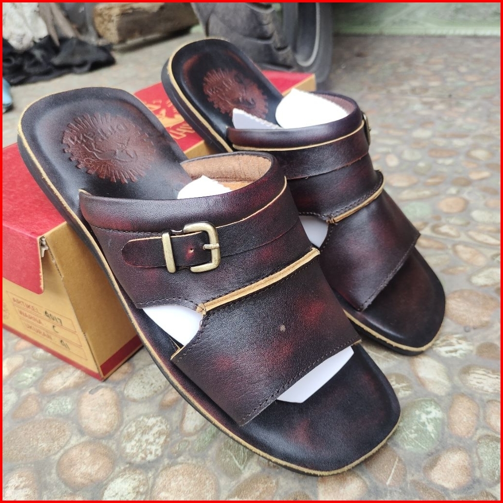 Sandal Kulit Pria Dr. I Am 4017 Coklat Produksi Sendiri