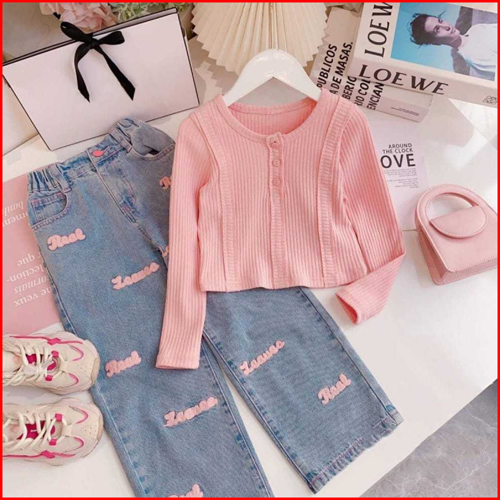 Helena Girl Set Setelan Anak Perempuan Baju Anak Import Impor Korean Style Jeans Kulot Baju Rajut Knit Kekinian Usia 3 T