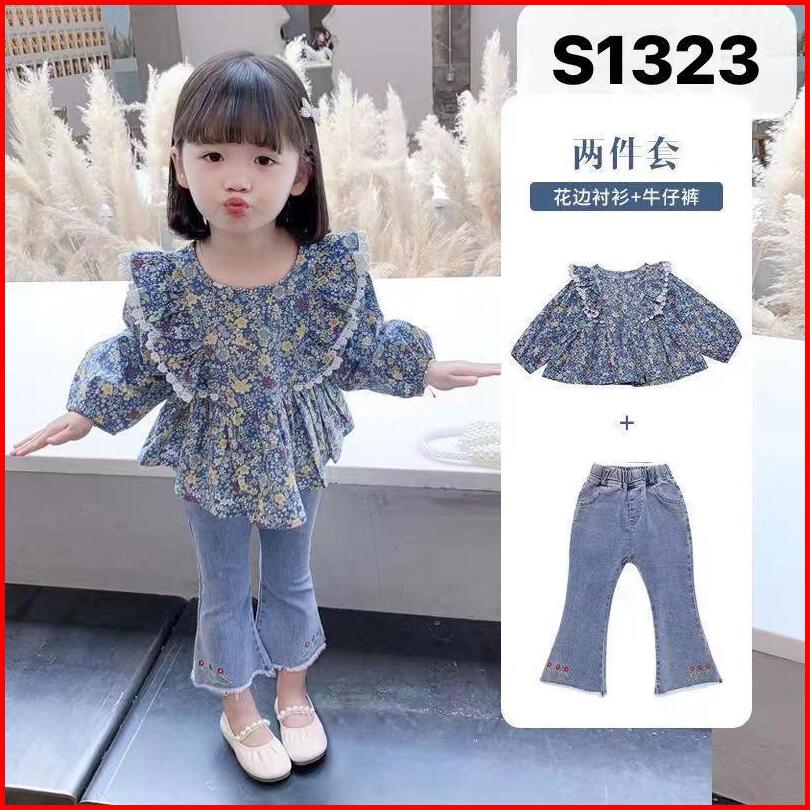 Setelan Anak Perempuan Motif Bunga Lengan Panjang