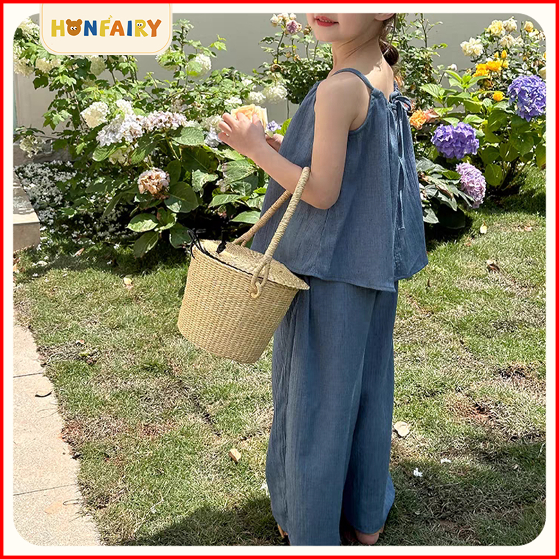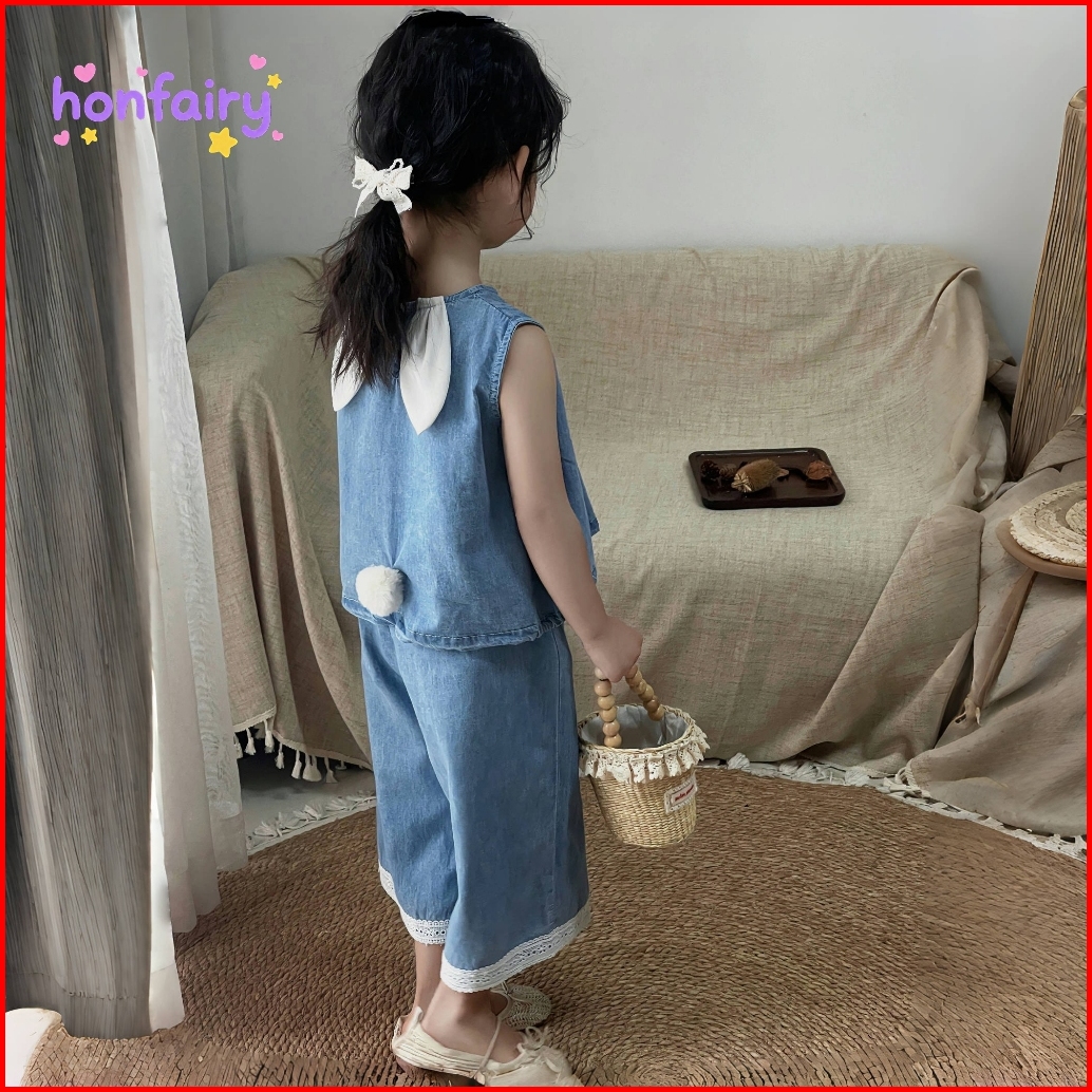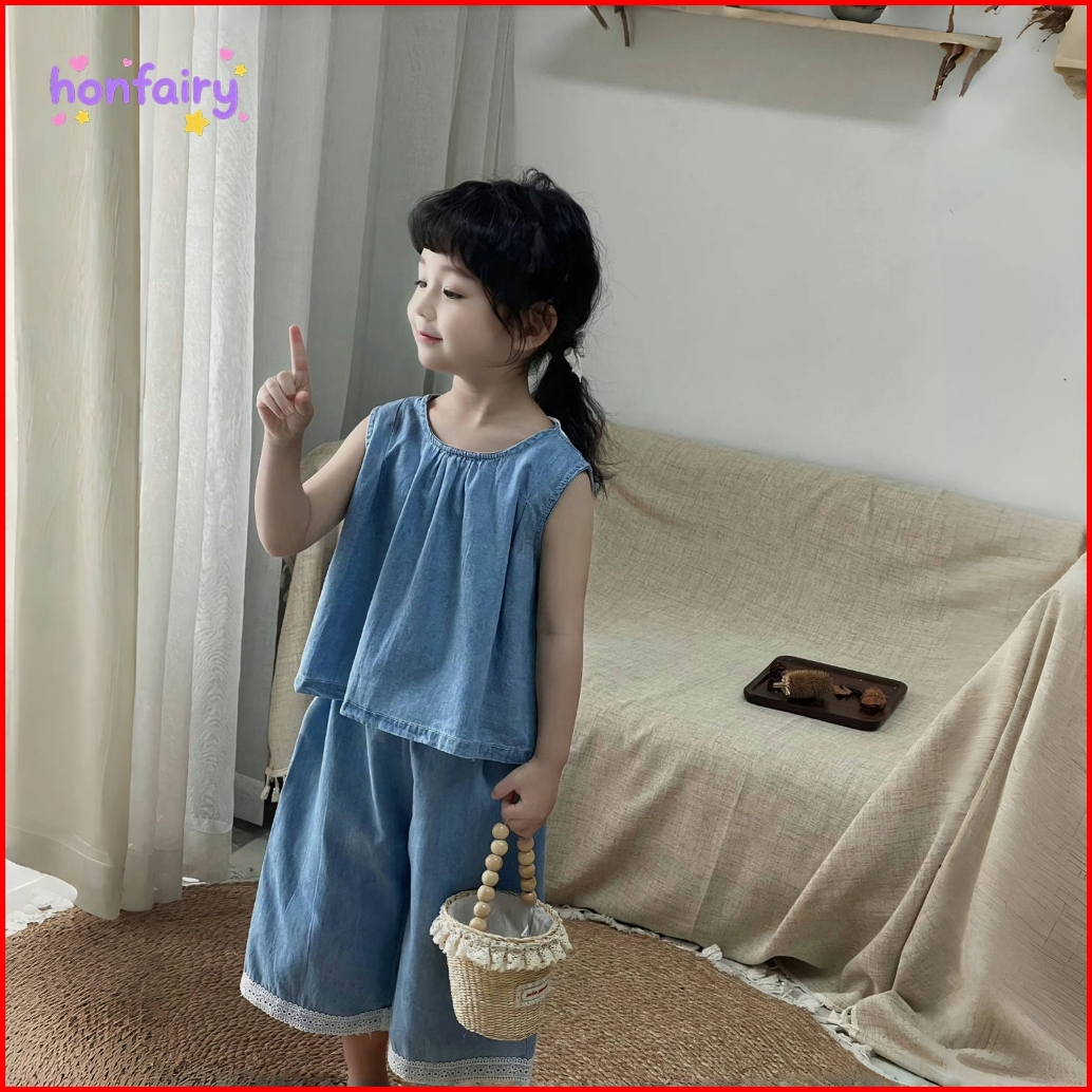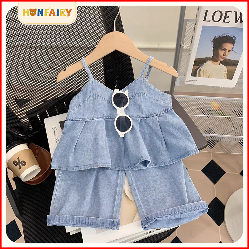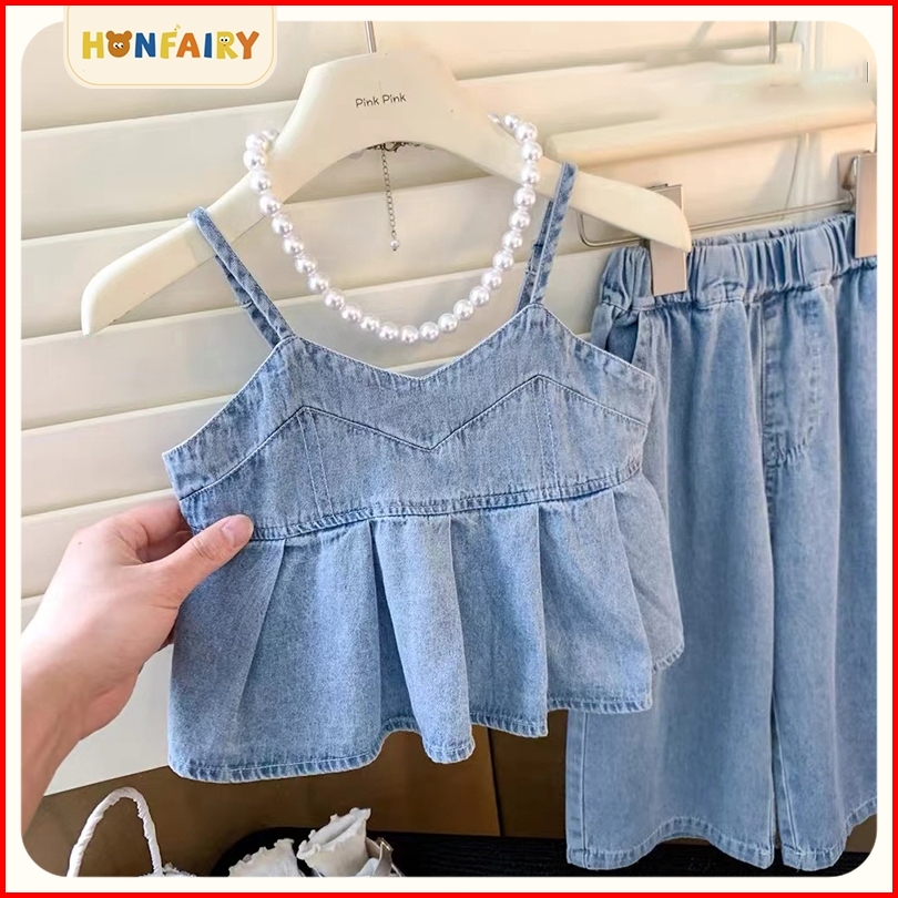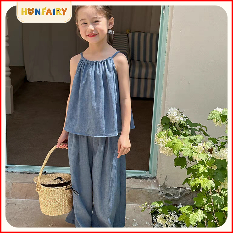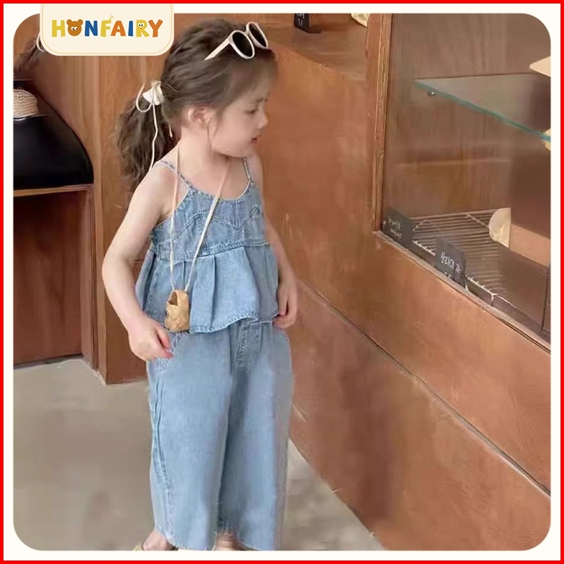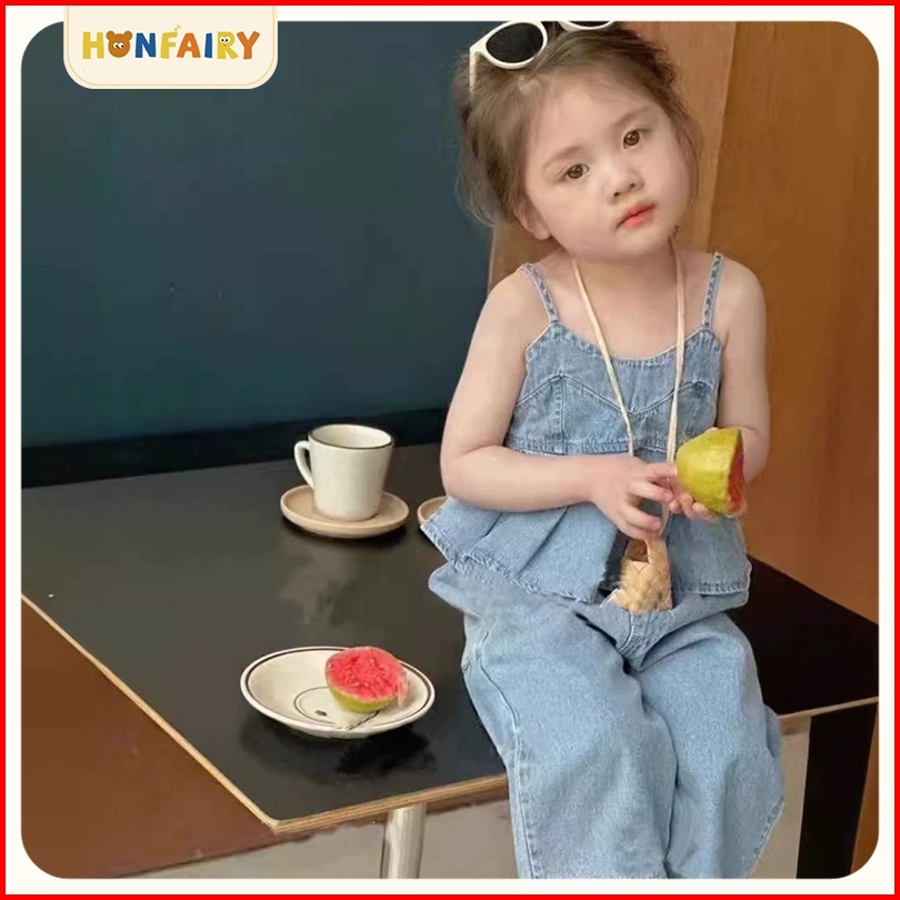 Pakaian Anak Perempuan Denim Suspender Ootd Korean Style Anak Bernapas Suspender Celana Kaki Lebar
