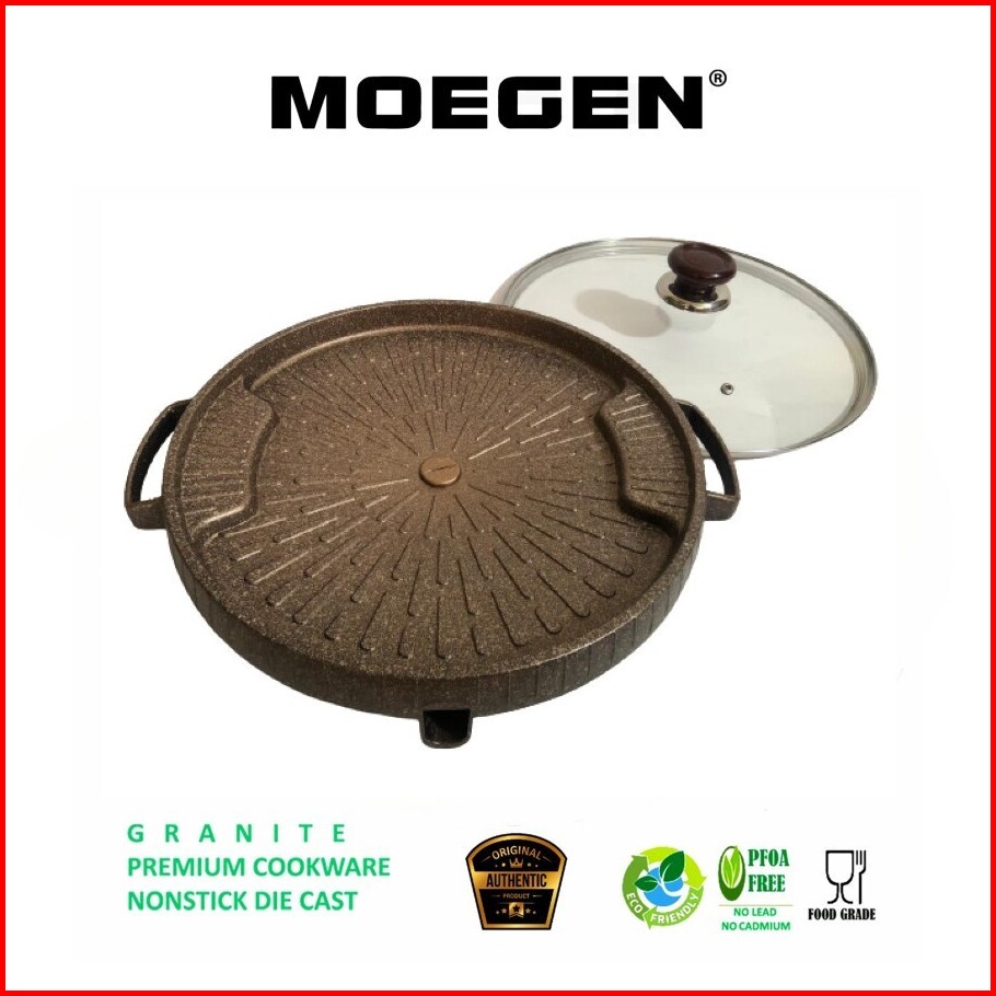 Original Moegen Germany Bulgogi Pan 32 Cm Grill Pan Panggangan Bbq Anti Lengket Tanpa Tutup Kaca
