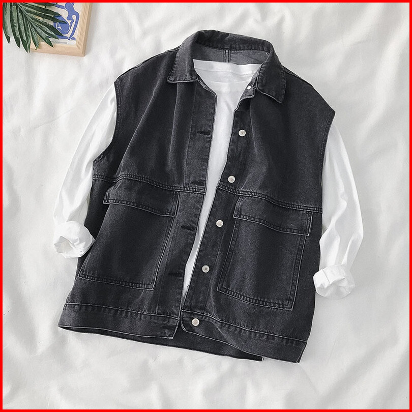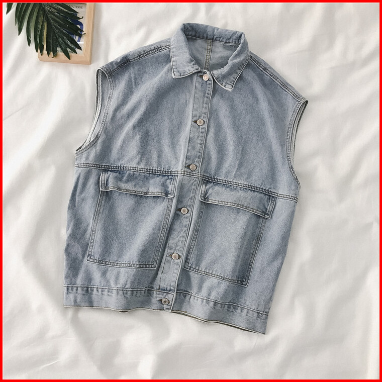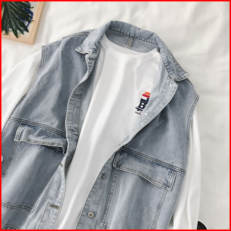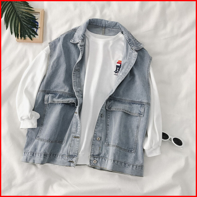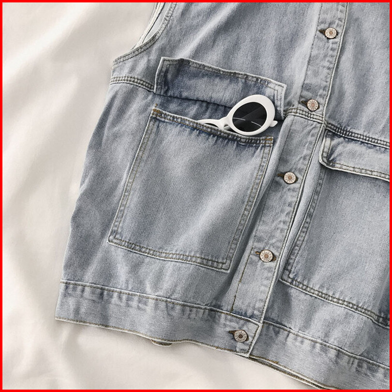 Rompi Denim Wanita Tanpa Lengan Rompi Gaya Korea Volkswagen Gaya Baru
