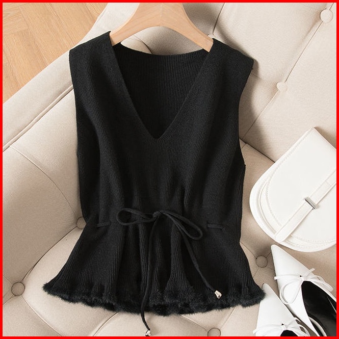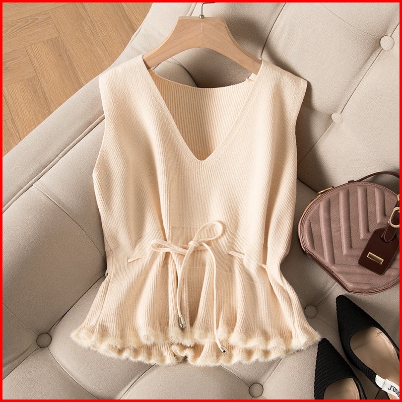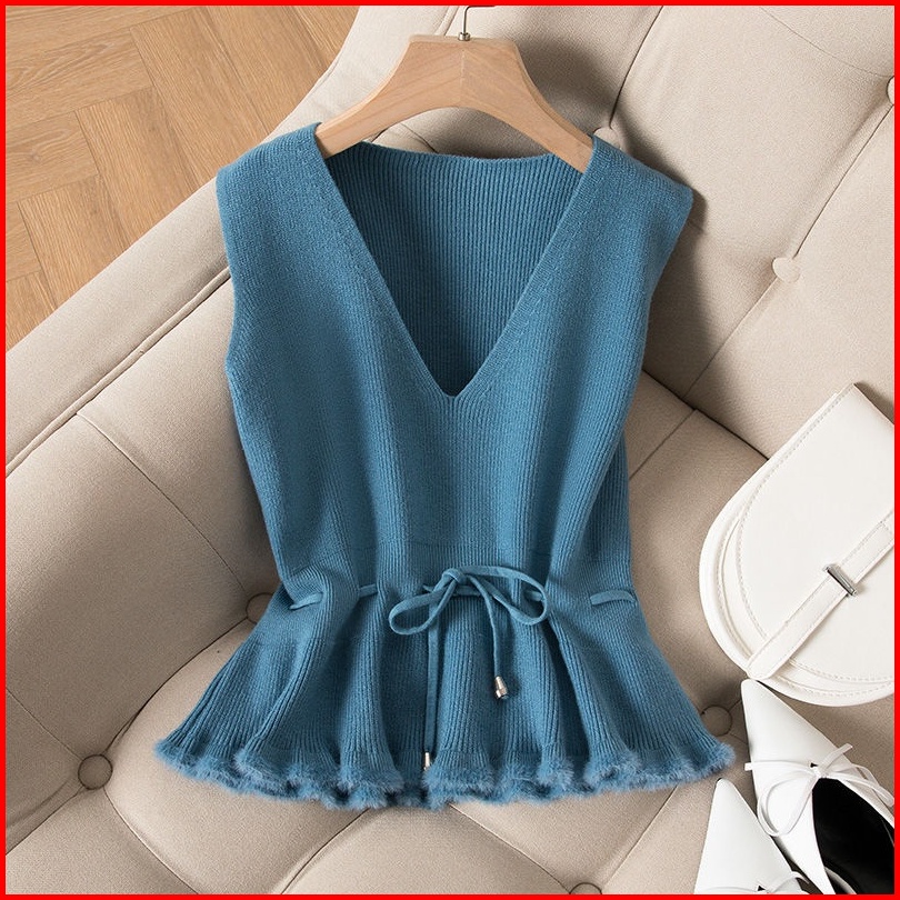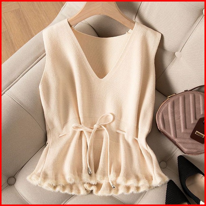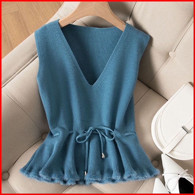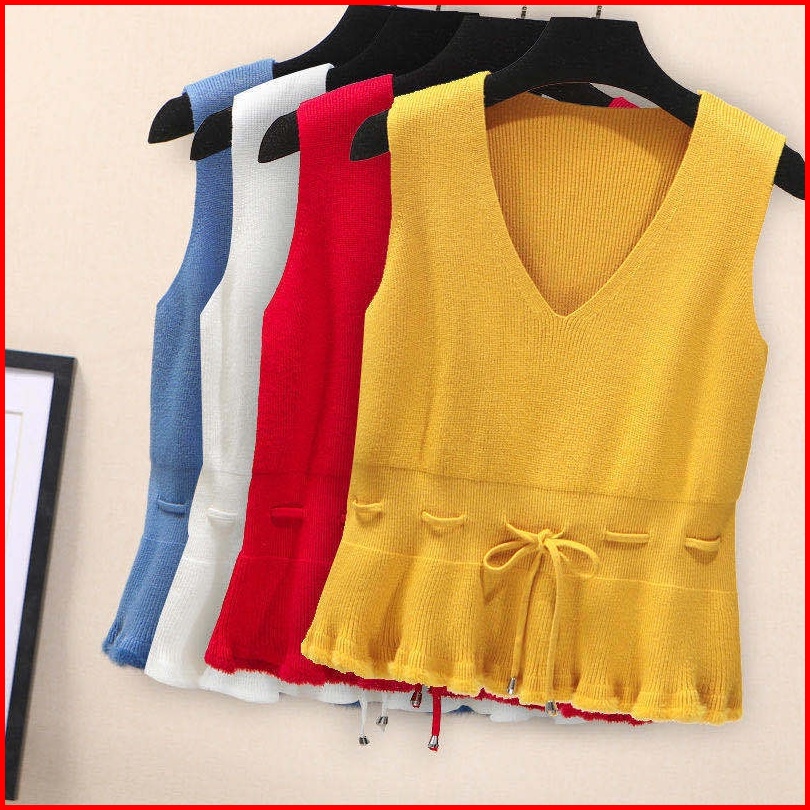 Rompi Rajutan Wanita Musim Gugur Dan Musim Dingin Baru Pinggang Pinggang Rompi Pullover Sweater Rompi Jaket Tanpa Lengan