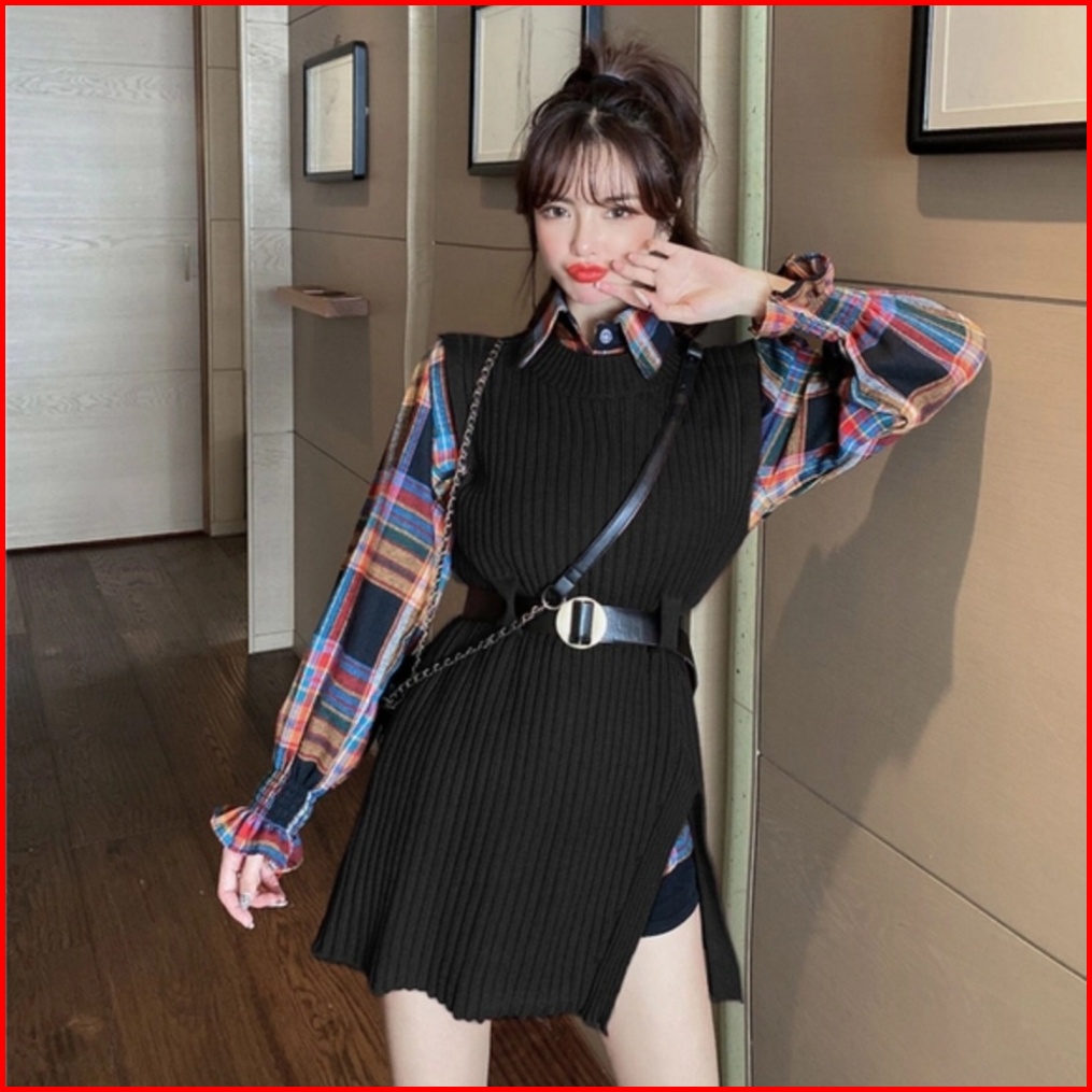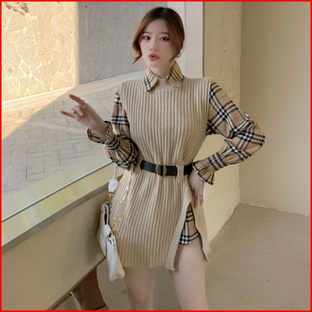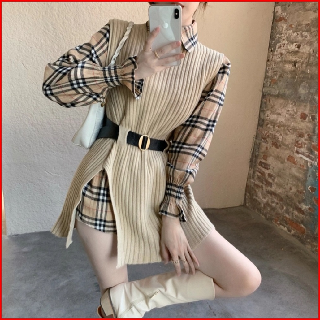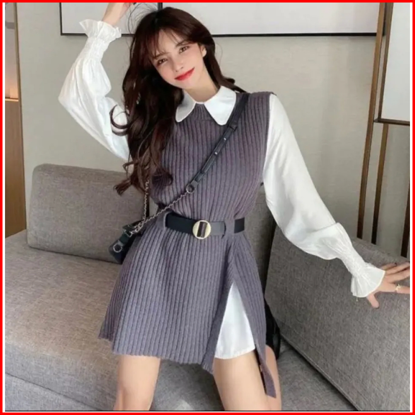 Basica Moda F127 Atasan Top Outer Vest Knit Amanda Hanya Rompi Belt Rajut Import