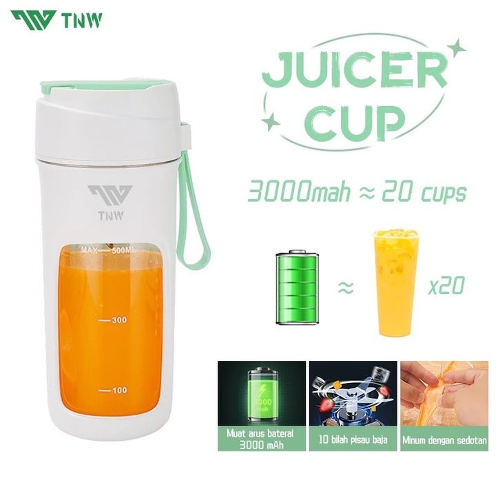 TNW KJ8 Juice Blender 10 Pisau Portable Jus Belender Buah 500ml Juicer Ice Crusher 3000mAh Rechargeable