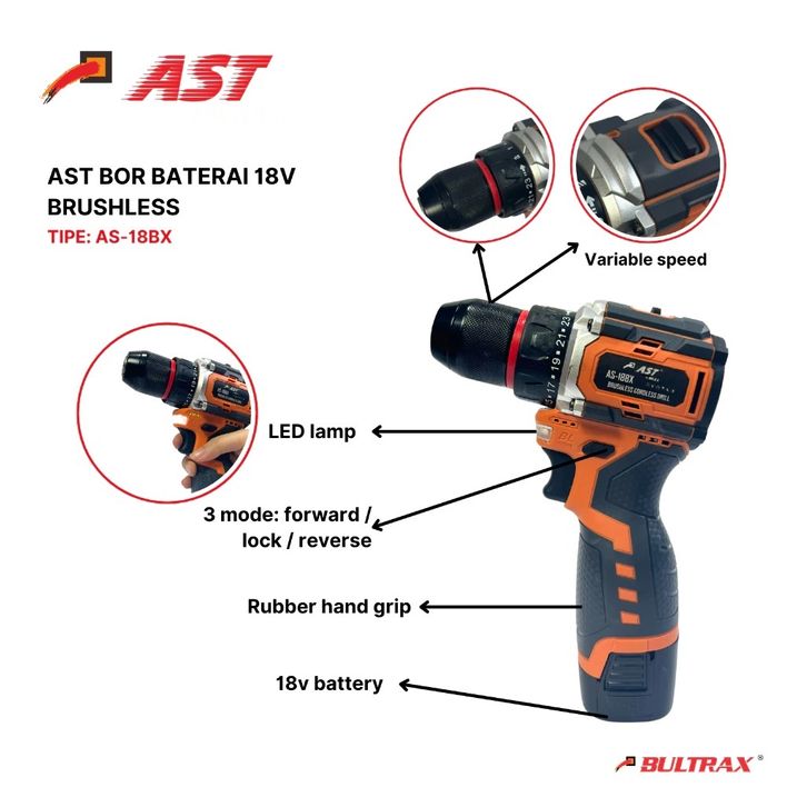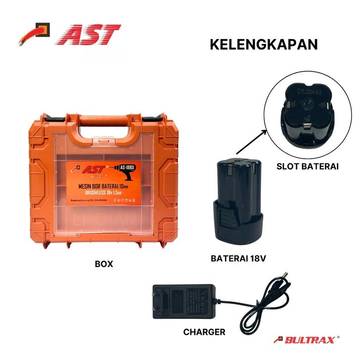 AST Mesin Bor Baterai AS-18BX 18V 10mm BRUSHLESS / Cordless Drill 18BX bor batre / baterai bor cas / bor cordless elektr