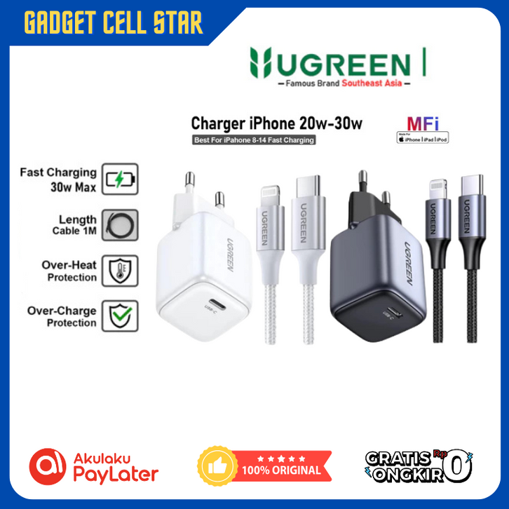 [Mall] UGREEN Charger Charger Iphone MFI iPhone 11 12 13 14 PD Type C to Lightning Fast Charging 20w 30w ORIGINAL 100%