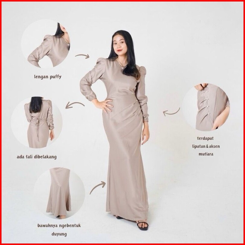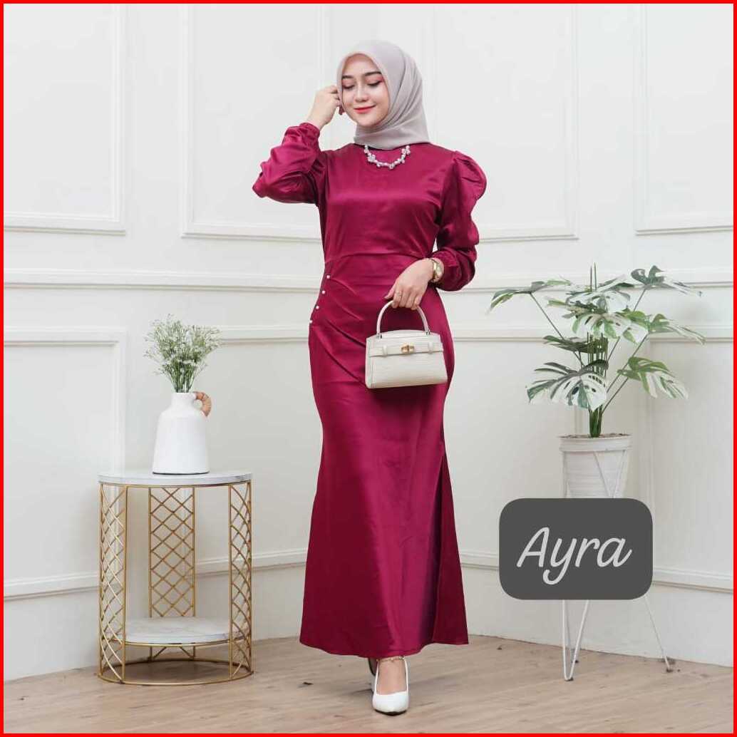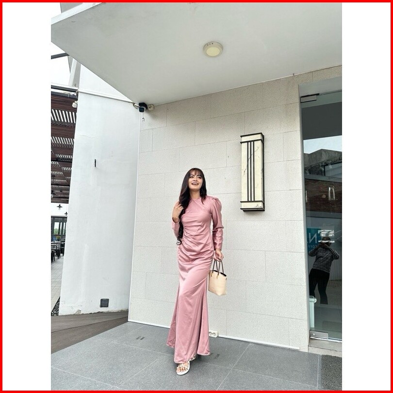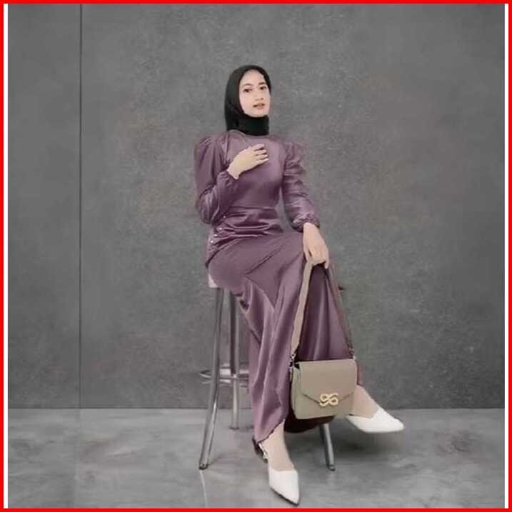 Elora Dress Satin Silk Premium Baju Fashion Wanita Kondangan Wisuda Couple Muslimah Gamis Terbaru