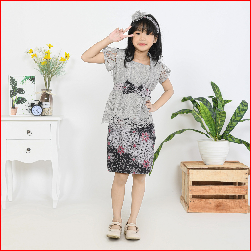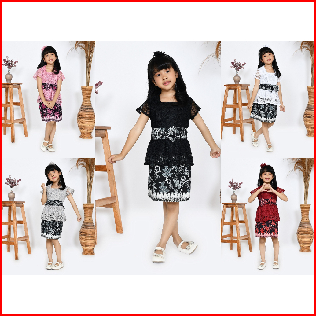 Setelan Kebaya Brukat Modern Batik Maya Kid Kebaya Anak Kutu Baru Pesta Kondangan