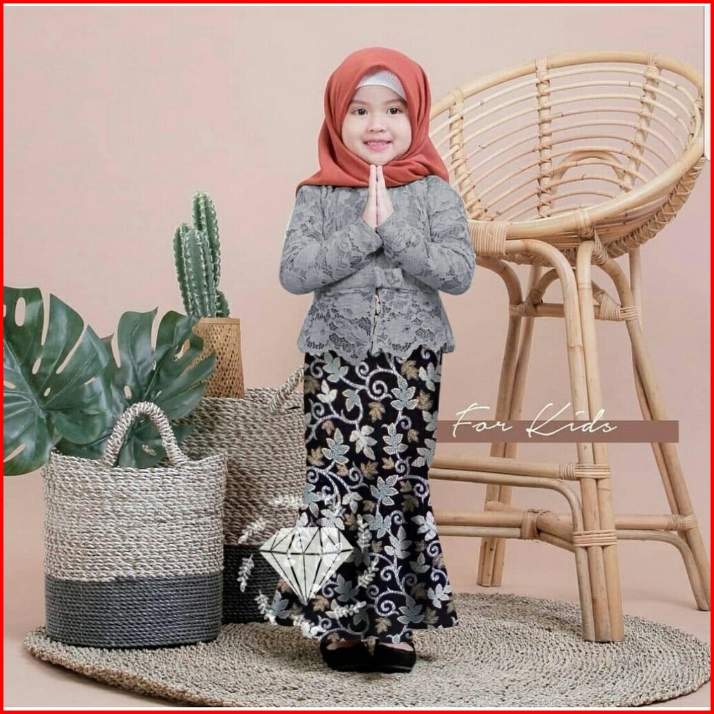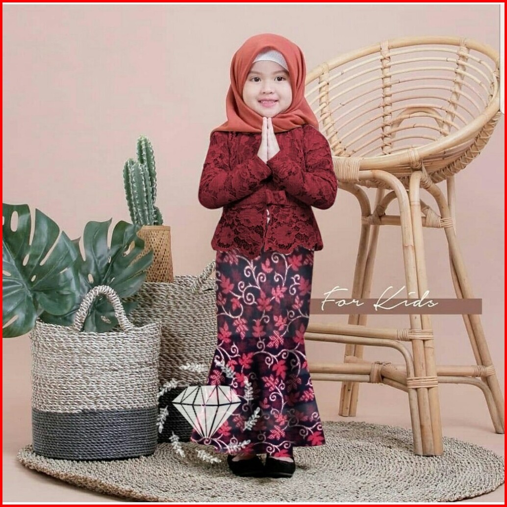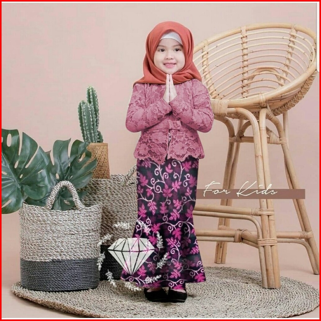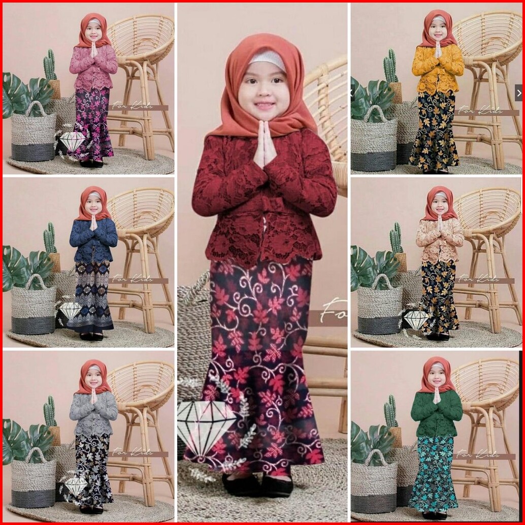 Realpict Set Shireen Kids Kebaya Brukat Cord Tulang Anak Rok Batik Duyung 7 Warna Set Shiren