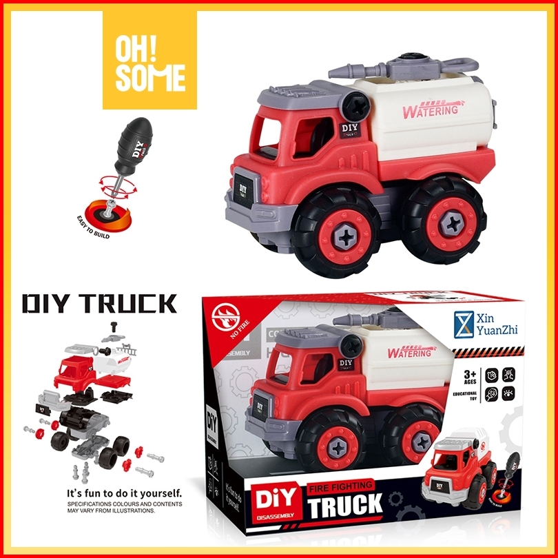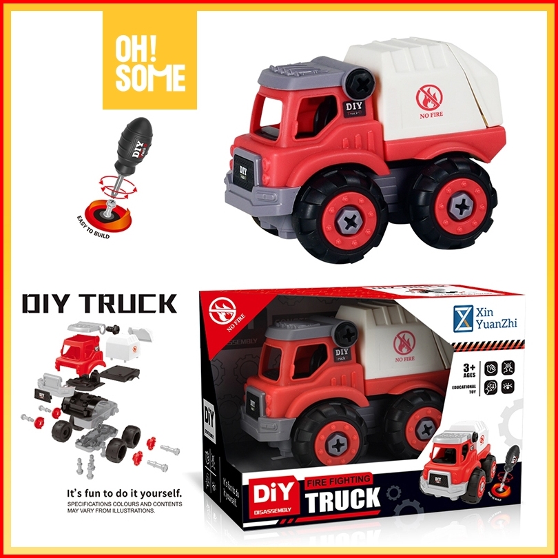 Ohsome - Mainan Anak Rakit Mobil Fire Fighting Truck Diy Mainan Rakit Diecast Mobil Truk Pemadam Kebakaran 3d Diy