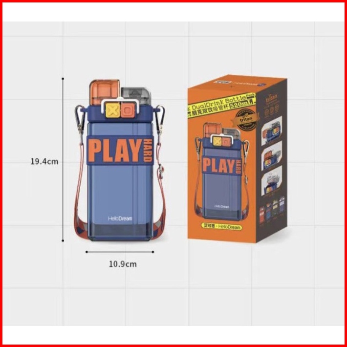 Botol Minum Anak Tritan 520ml Play Hard Bpa Free Sedot Teguk Colorful