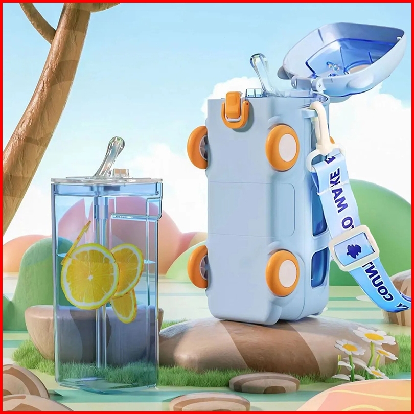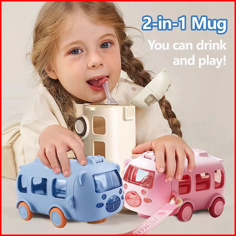 Roxart 500ml Botol Air Minum Anak Bentuk Bus Lucu Karakter Mobil Mobilan Botol Mainan Anak Ada Roda