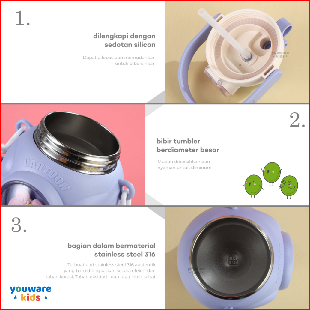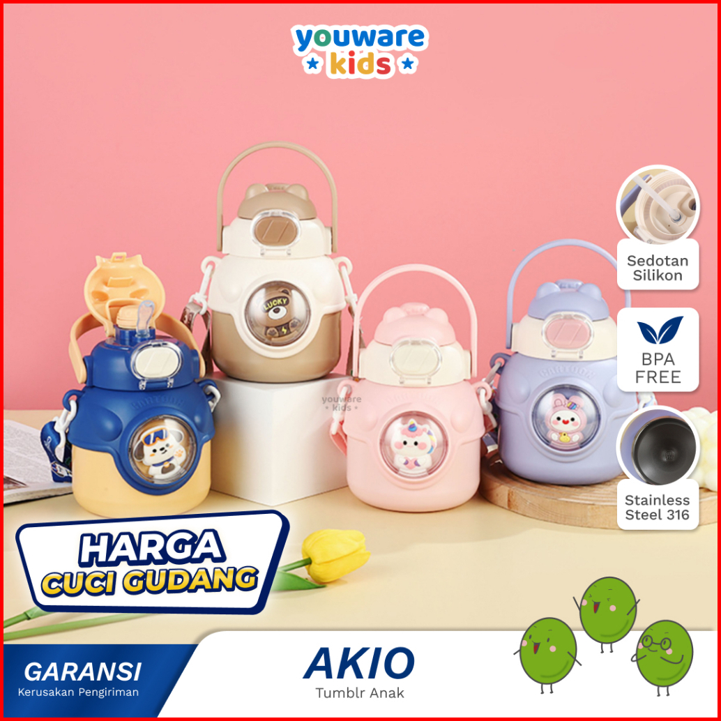 Youware - Akio Botol Minum Anak Tumbler Stainless Steel Dengan Sedotan Bpa Free