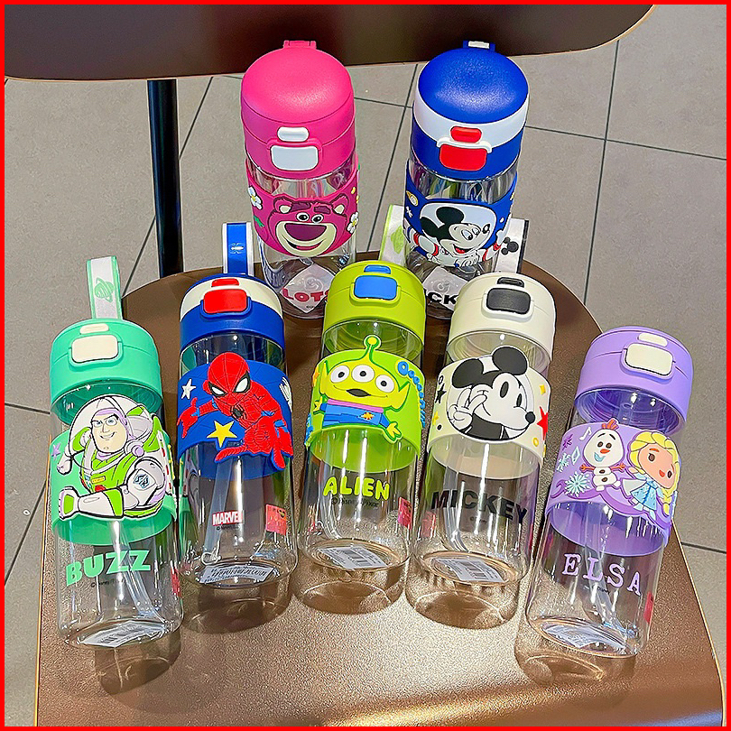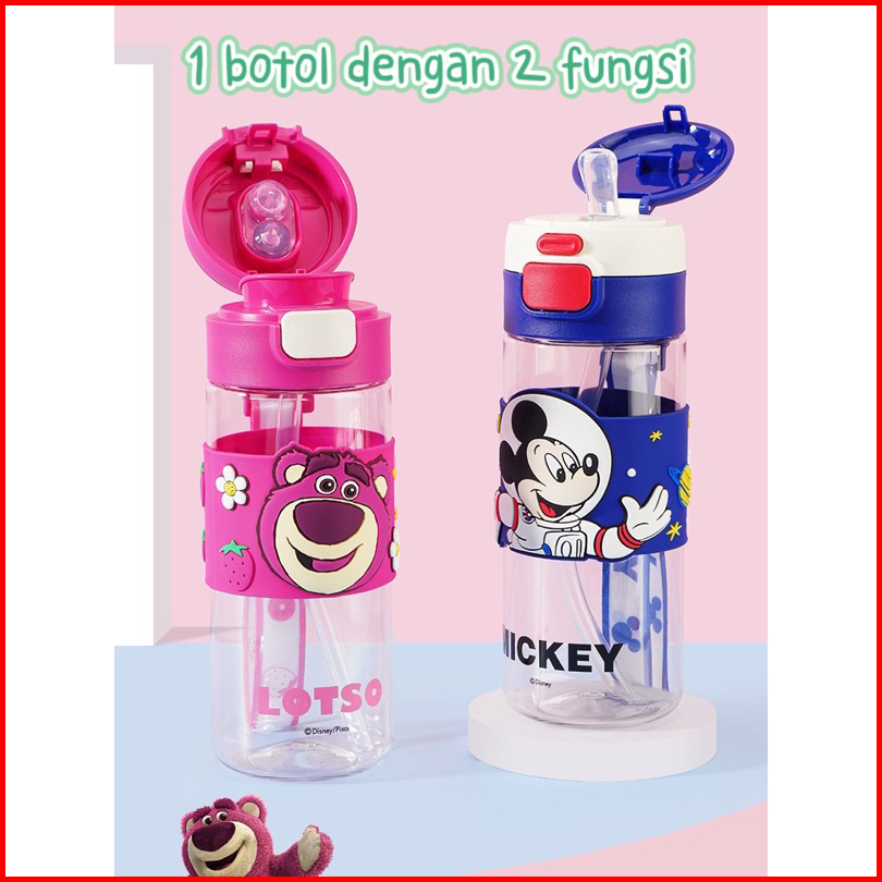 Botol Minum Anak 2in1 Sedot Teguk 600ml Tritan Material Spiderman Mickey Elsa Maruko Toy Story Lotso Ultraman