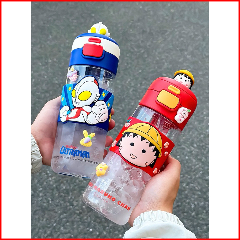 Botol Minum Anak 2in1 Sedot Teguk 600ml Tritan Material Spiderman Mickey Elsa Maruko Toy Story Lotso Ultraman 3d Mini He