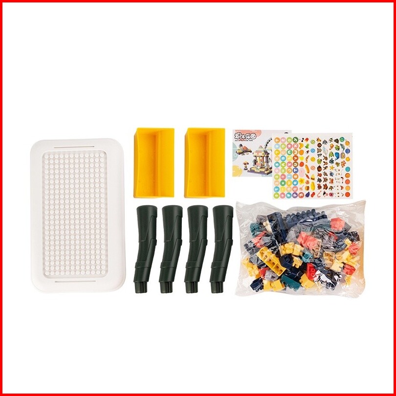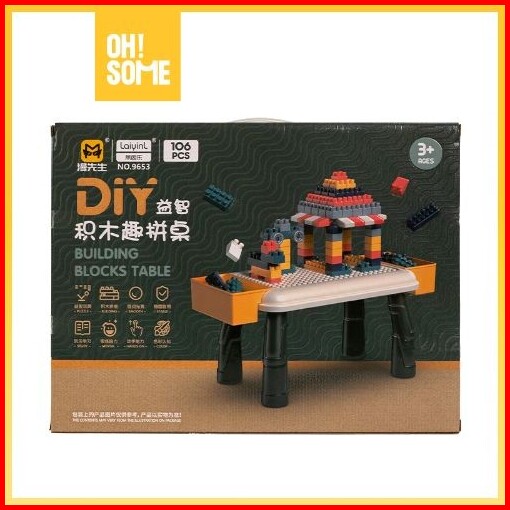 Ohsome - Mr. Man Mainan Brick Balok Susun Meja Anak Diy 106pcs Bahan Abs Awet Kuat Villa Houses Can Be Built