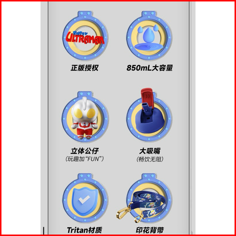 Botol Minum Anak Ultraman 850ml Bahan Tritan Asli Super Hero Produk Berhologram