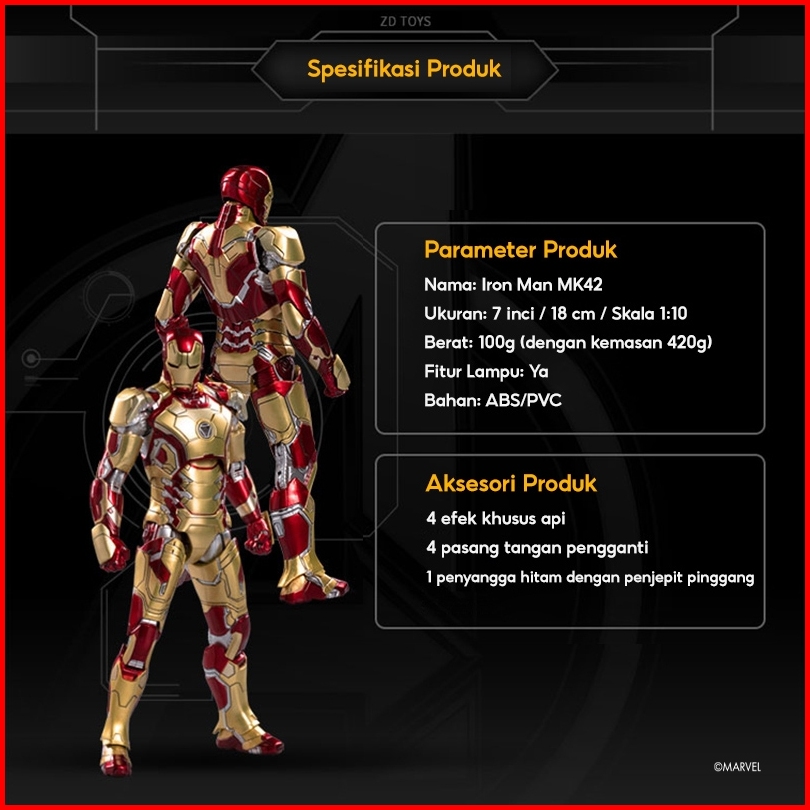 Ohsome Zd Toys Marvel Iron Man Mark 42 Action Figure Patung Pajangan Figure Ironman Mark 42 Mk42 Xlii 1 10 Scale