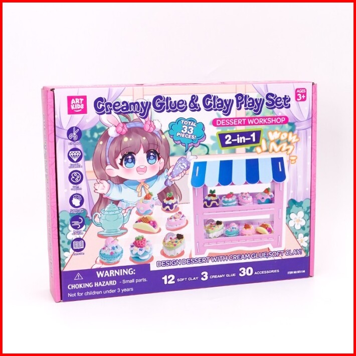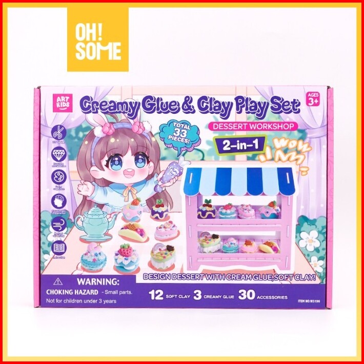 Ohsome Art Kids 2in1 Creamy Clay Set 33 Pcs Mainan Kerajinan Tangan Diy Dough Clay Plastisin 2 In 1 Tema Dessert Worksho