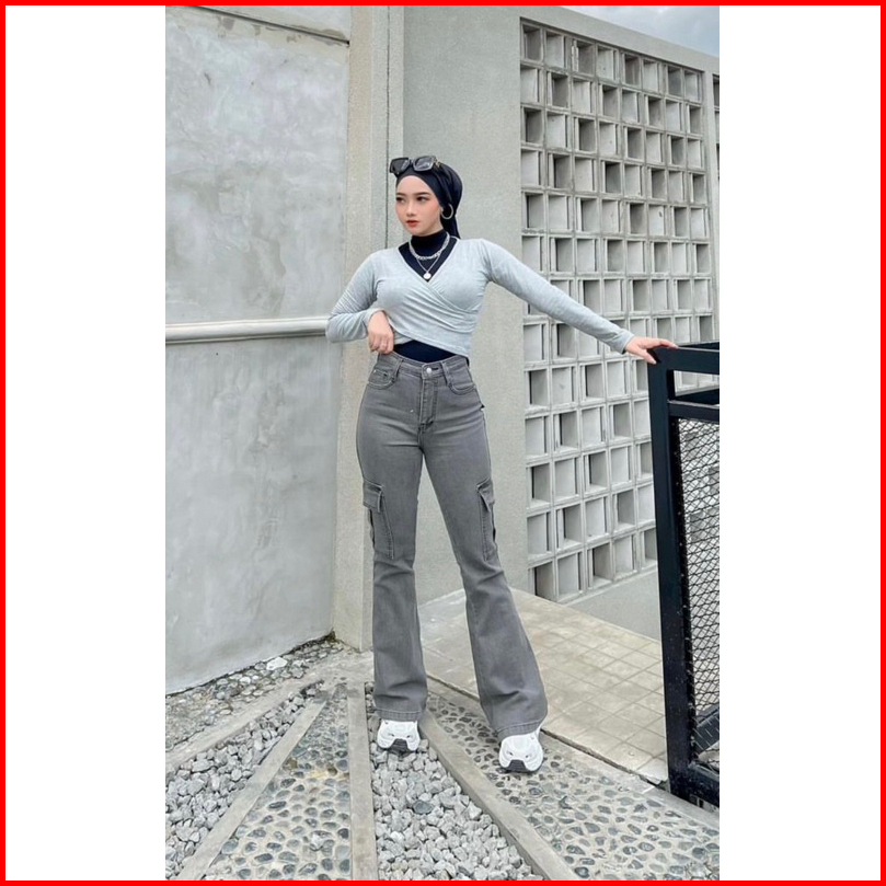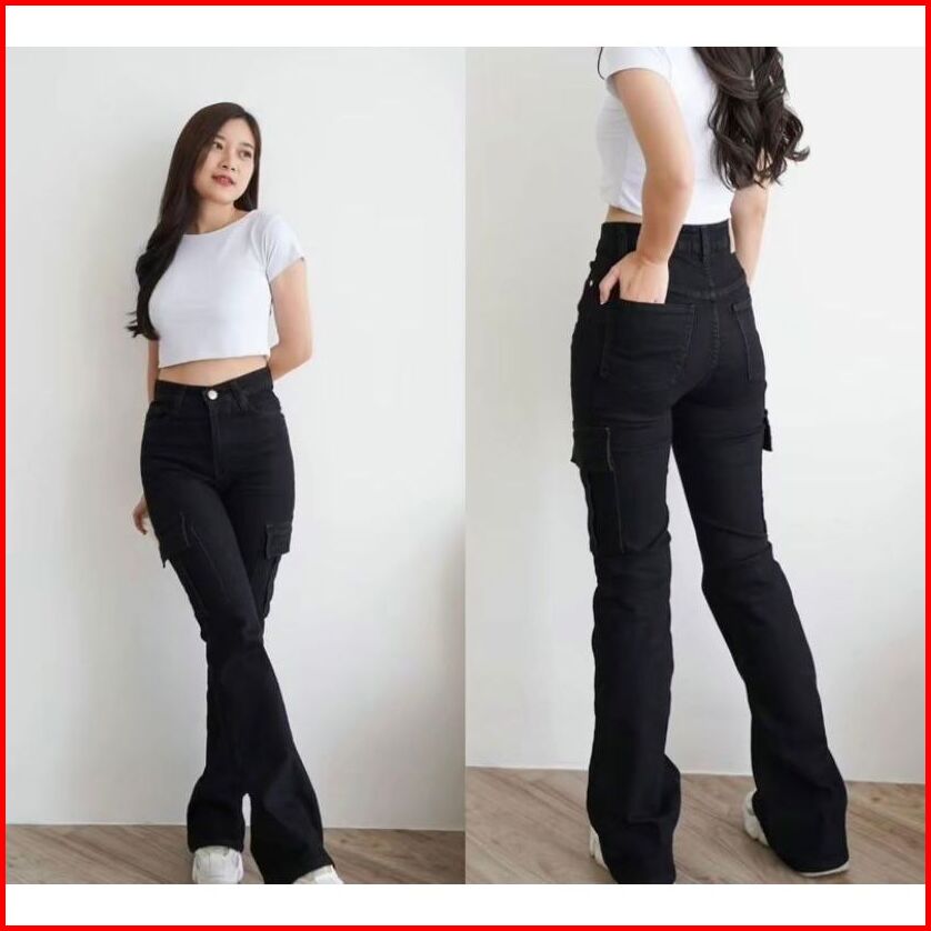 Celana Jeans Cutbray Cargo Highwaist Premium By Symone.co