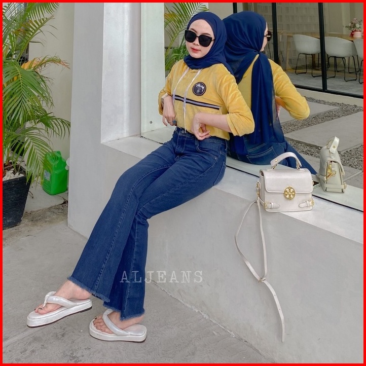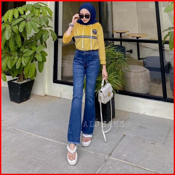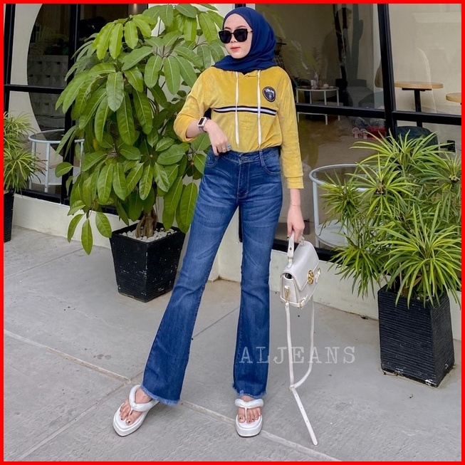 Go.al - Cutbray Hw Verada Cakar Jeans Stretch Wanita Medium Blue