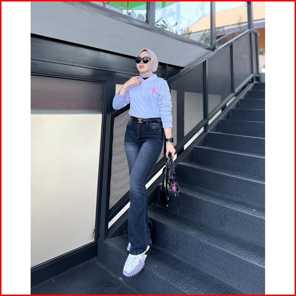 Setyo Fashion Celana Cutbray Jeans Wanita Terbaru High Waist Korean Style Bahan Stretch