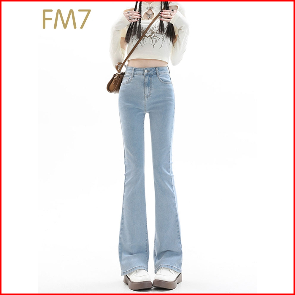 Fm7 L63 Street Style Jeans High Waist Cutbray Wanita Korean Flare Jeans - Biru Muda