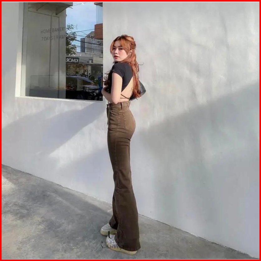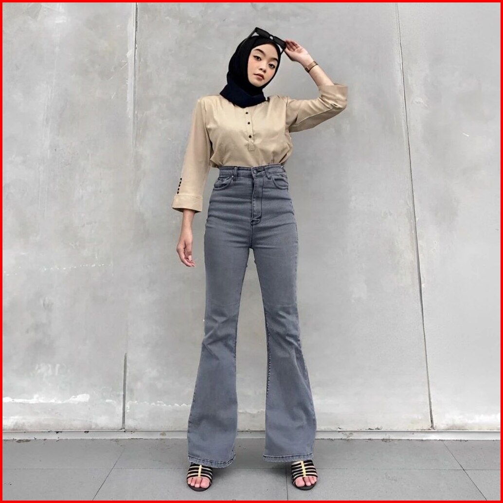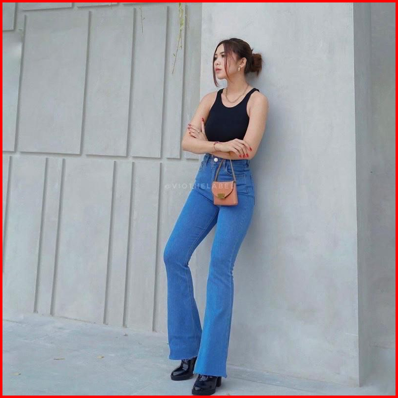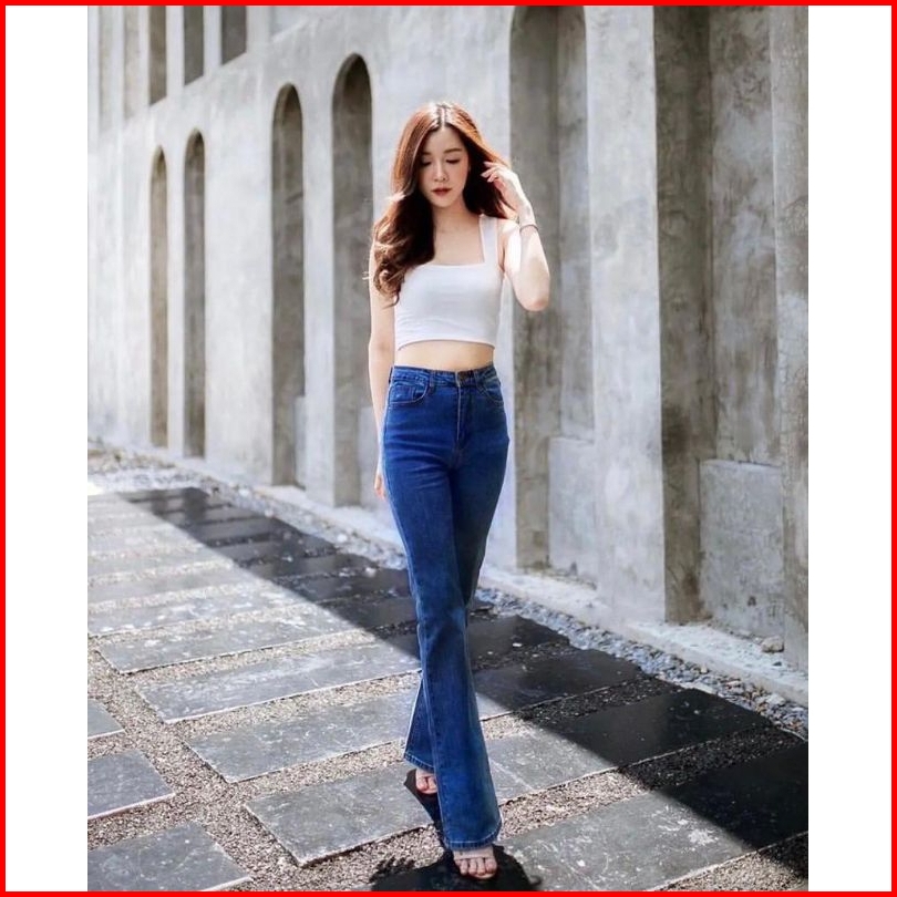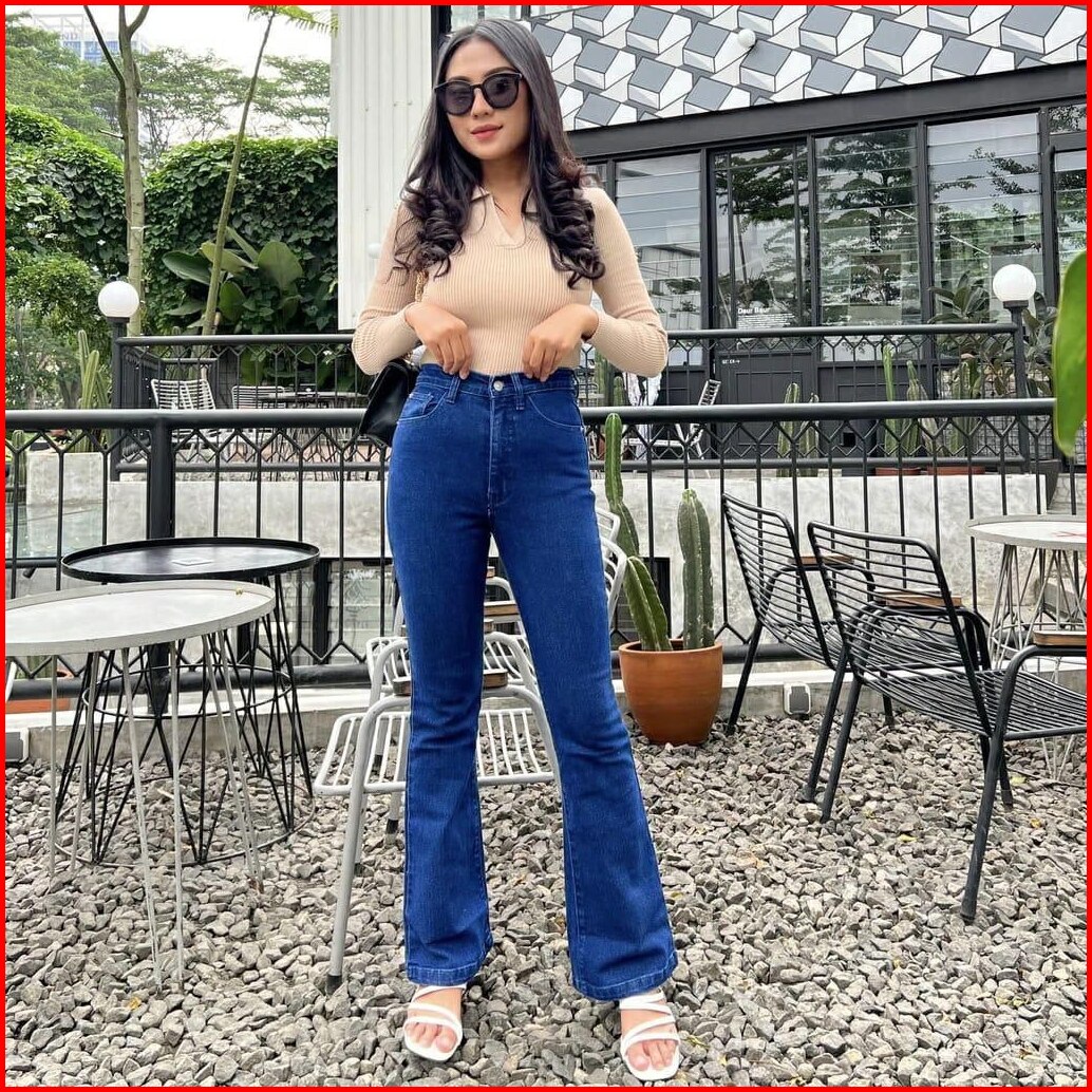 Celana Hightwaist Cutbray Jeans Stretch Wanita Kekinian