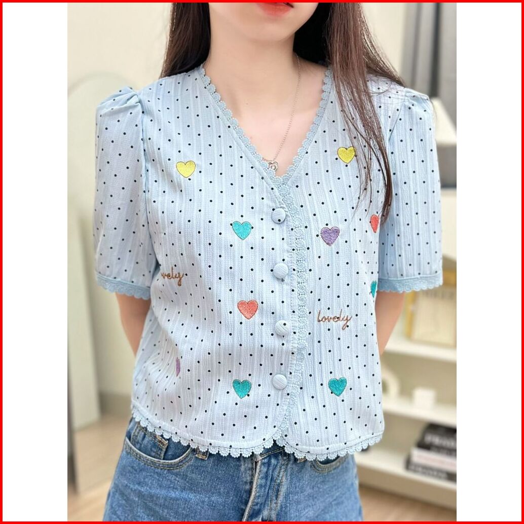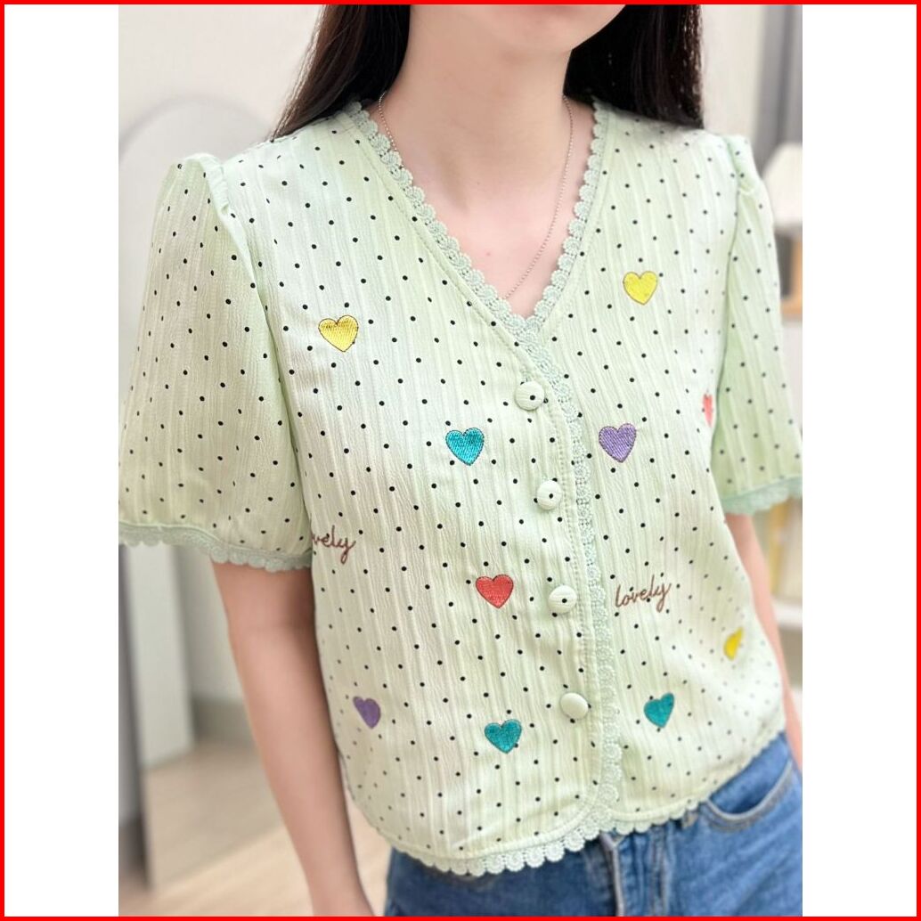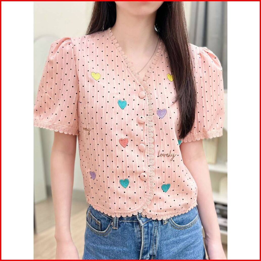 Marchie Ready Stock Bangkok - Lovely Polka Top Atasan Wanita Bordir Baju Perempuan Pastel