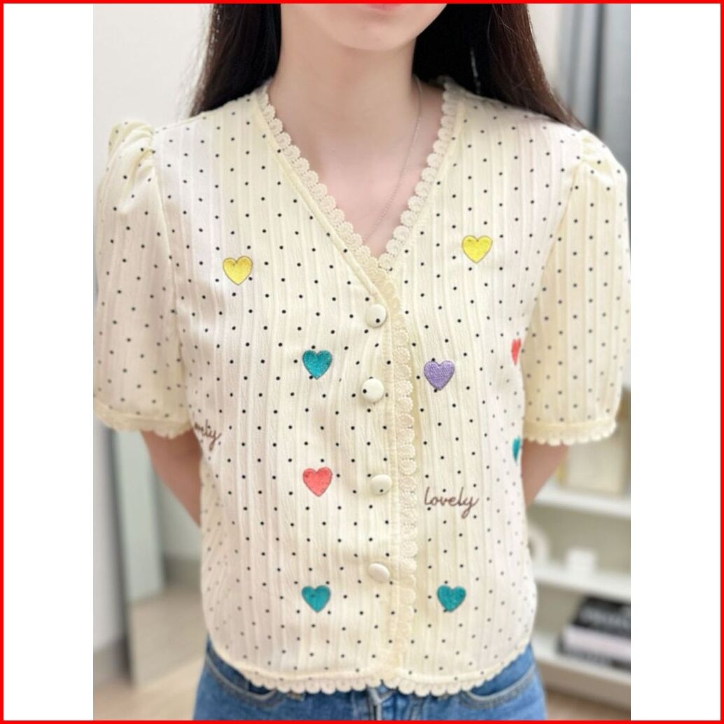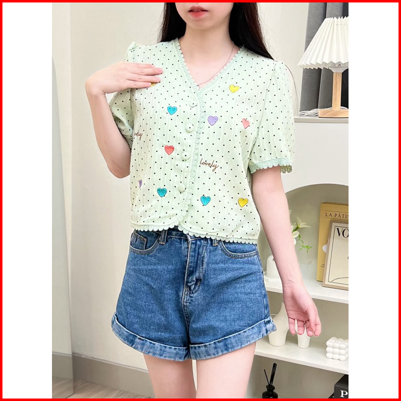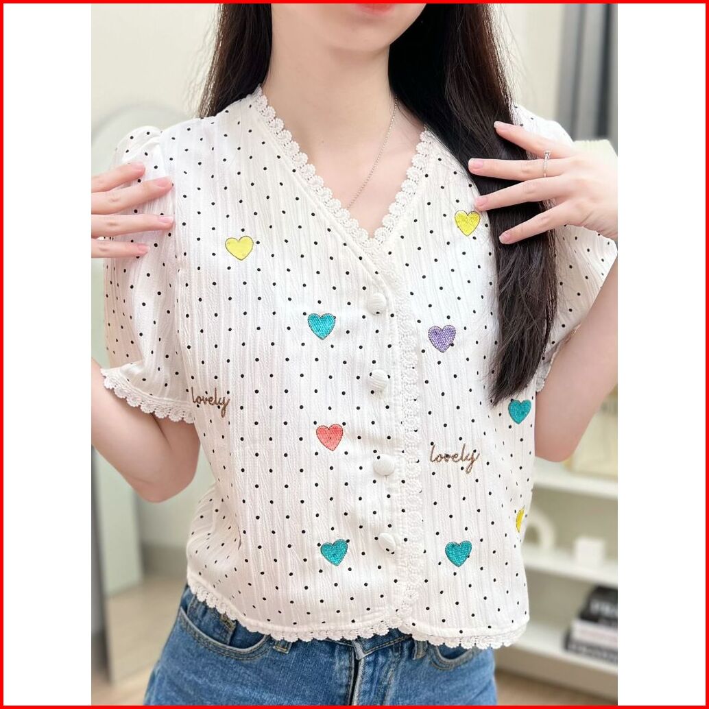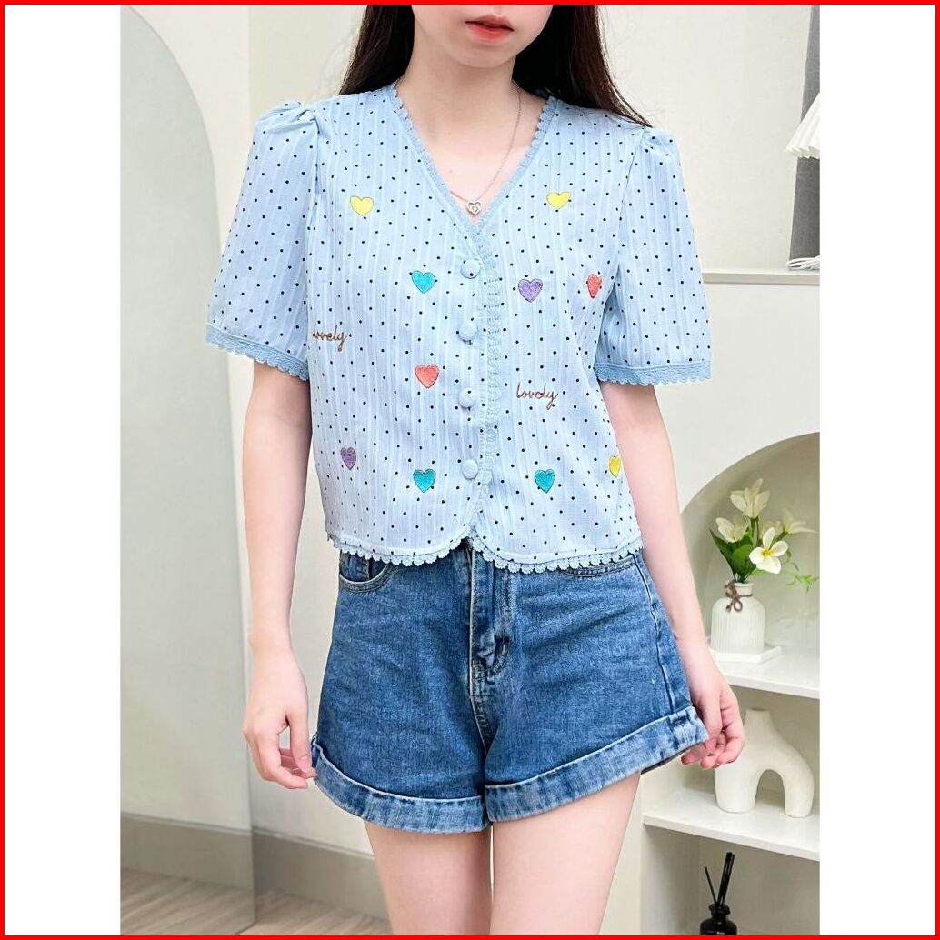 Marchie Ready Stock Bangkok - Lovely Polka Top Atasan Wanita Bordir Baju Perempuan Pastel