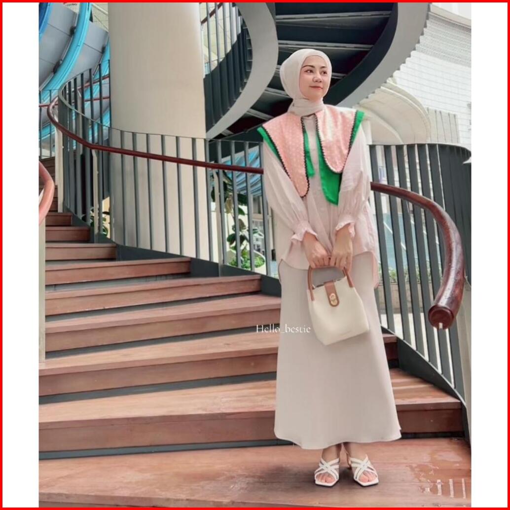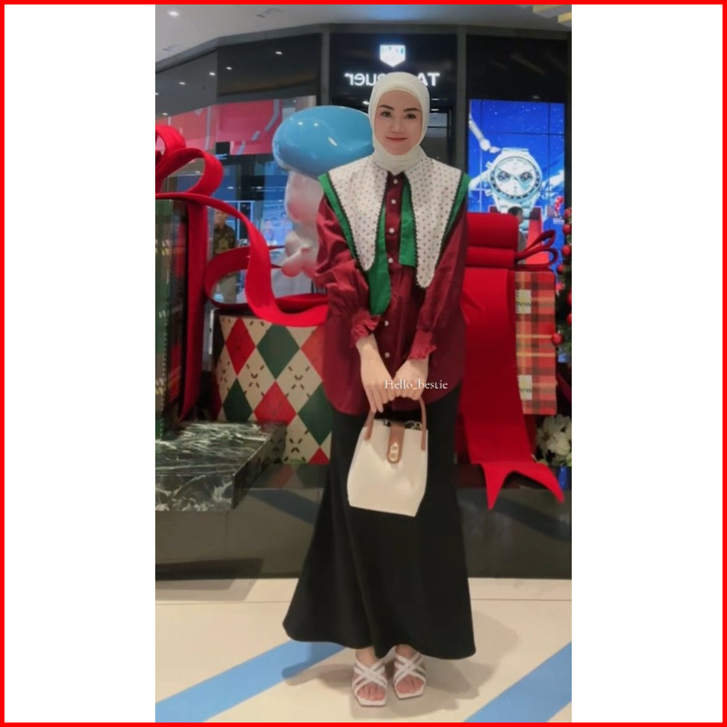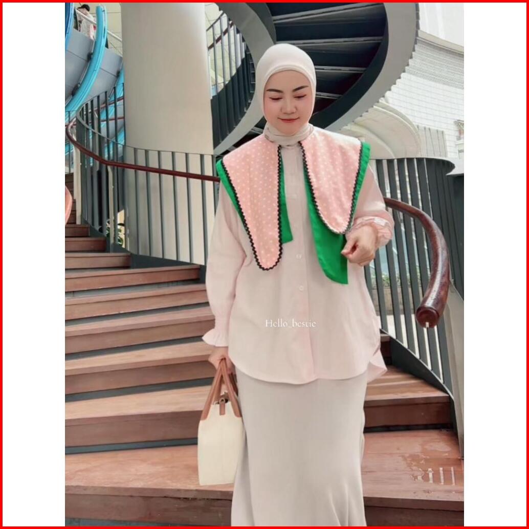 Hello Bestie - Clio Collar Blouse Ld 116cm - Blouse Wanita Lengan Panjang Puff Karet Detail Polkadot Katun Collar Casual