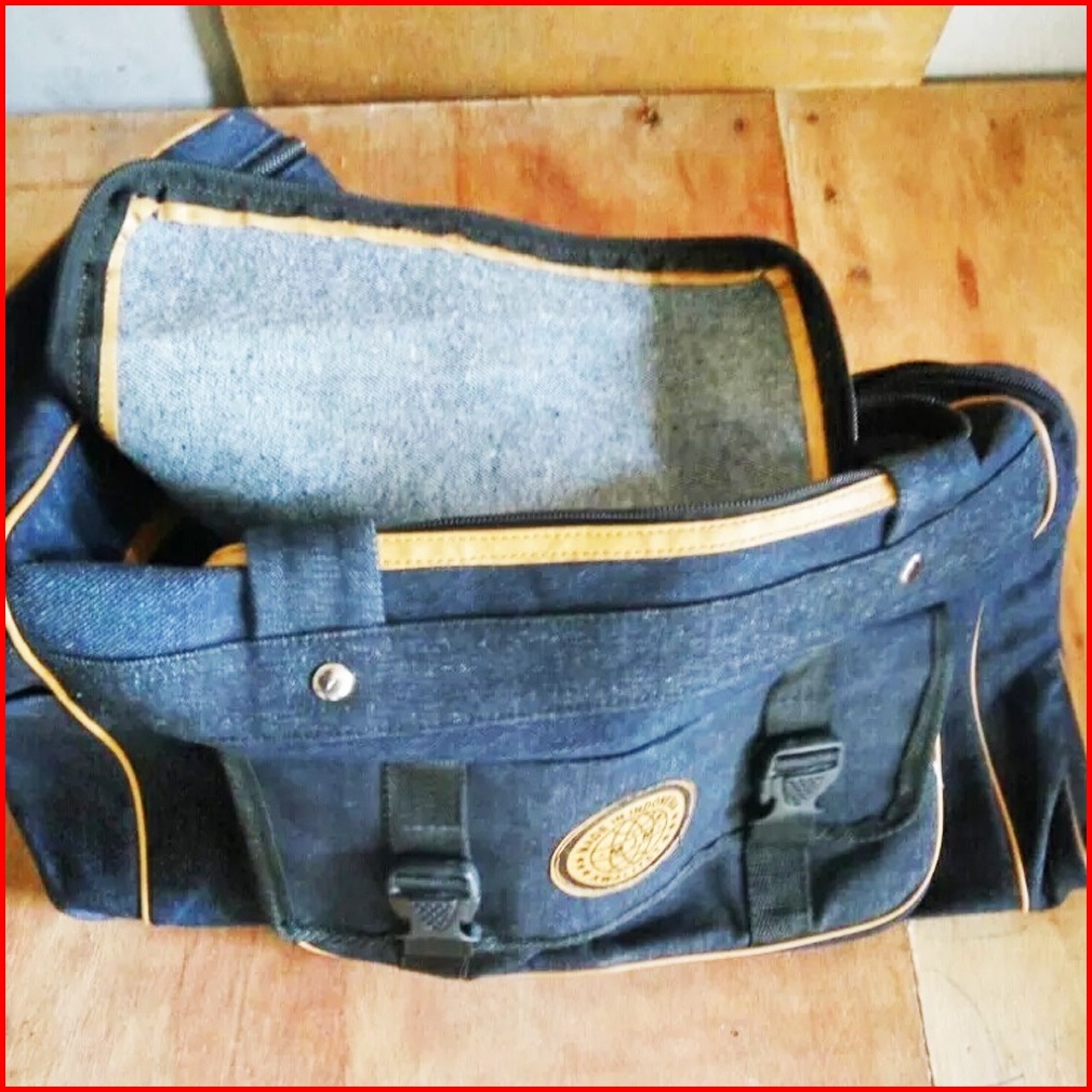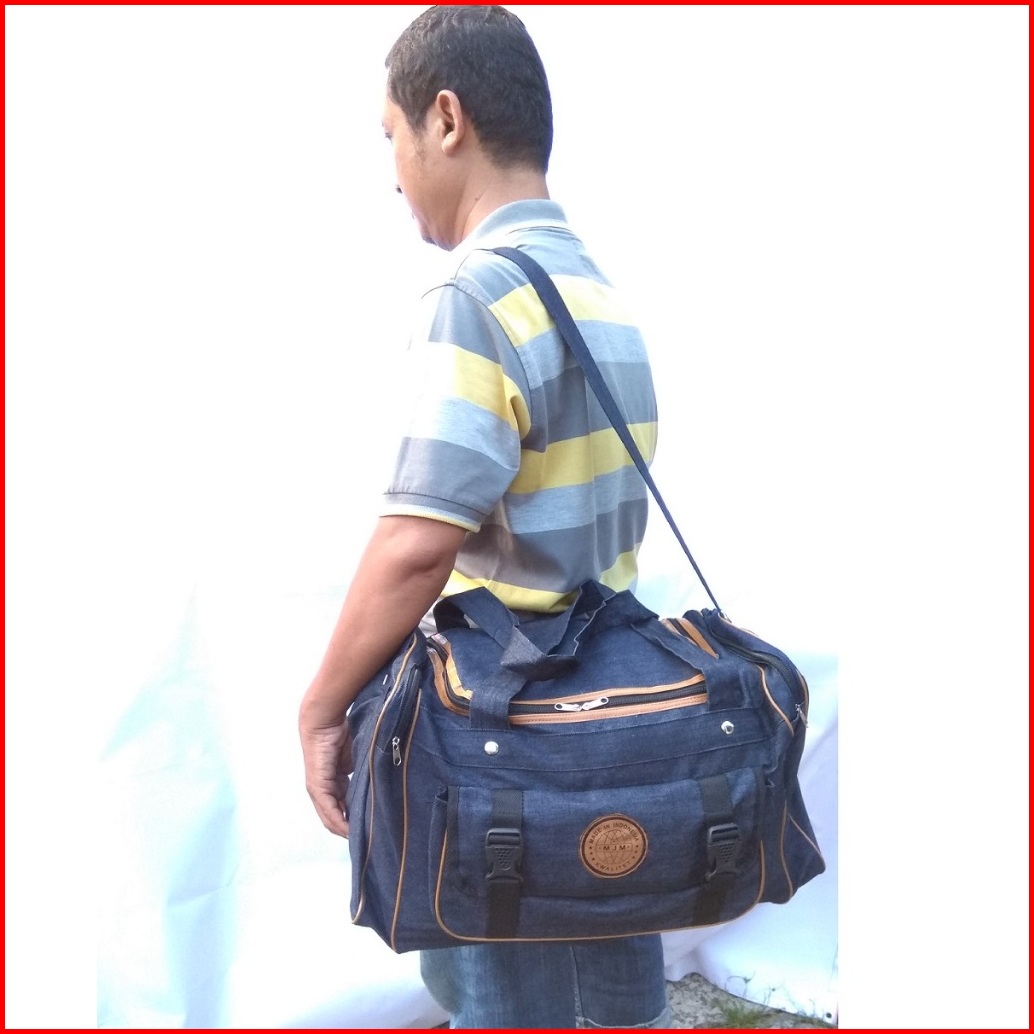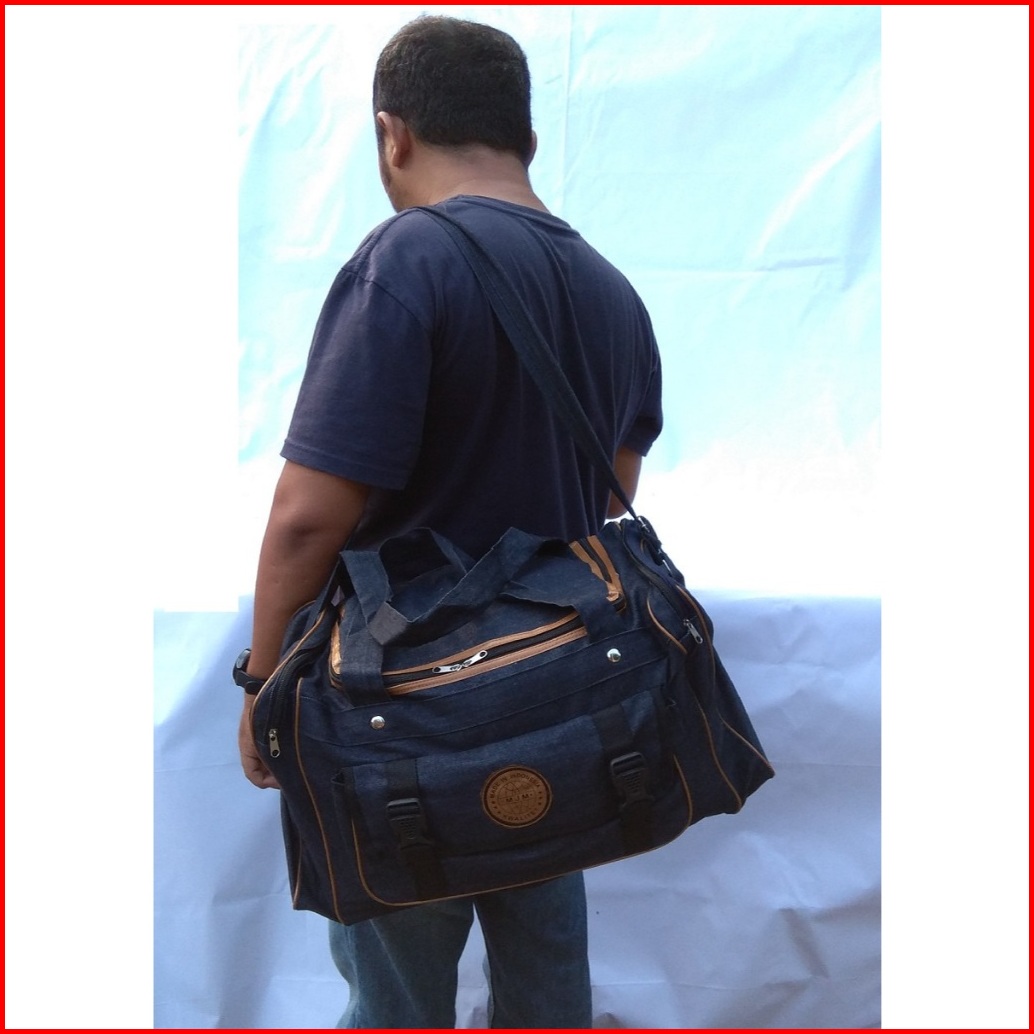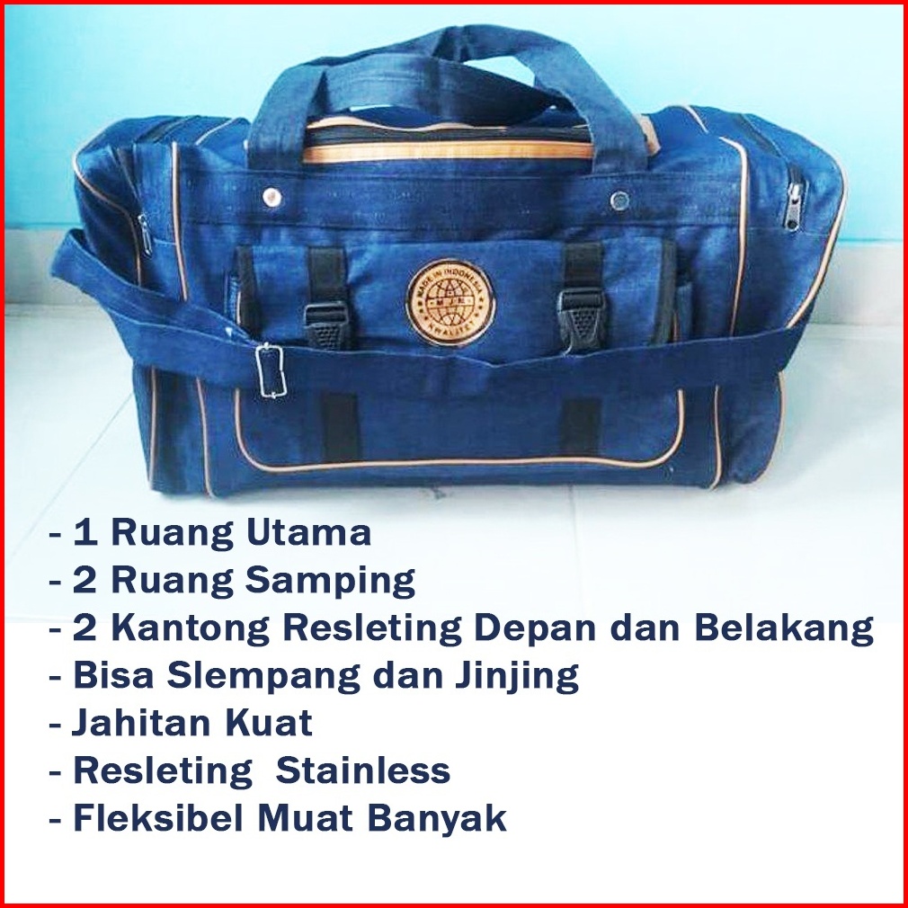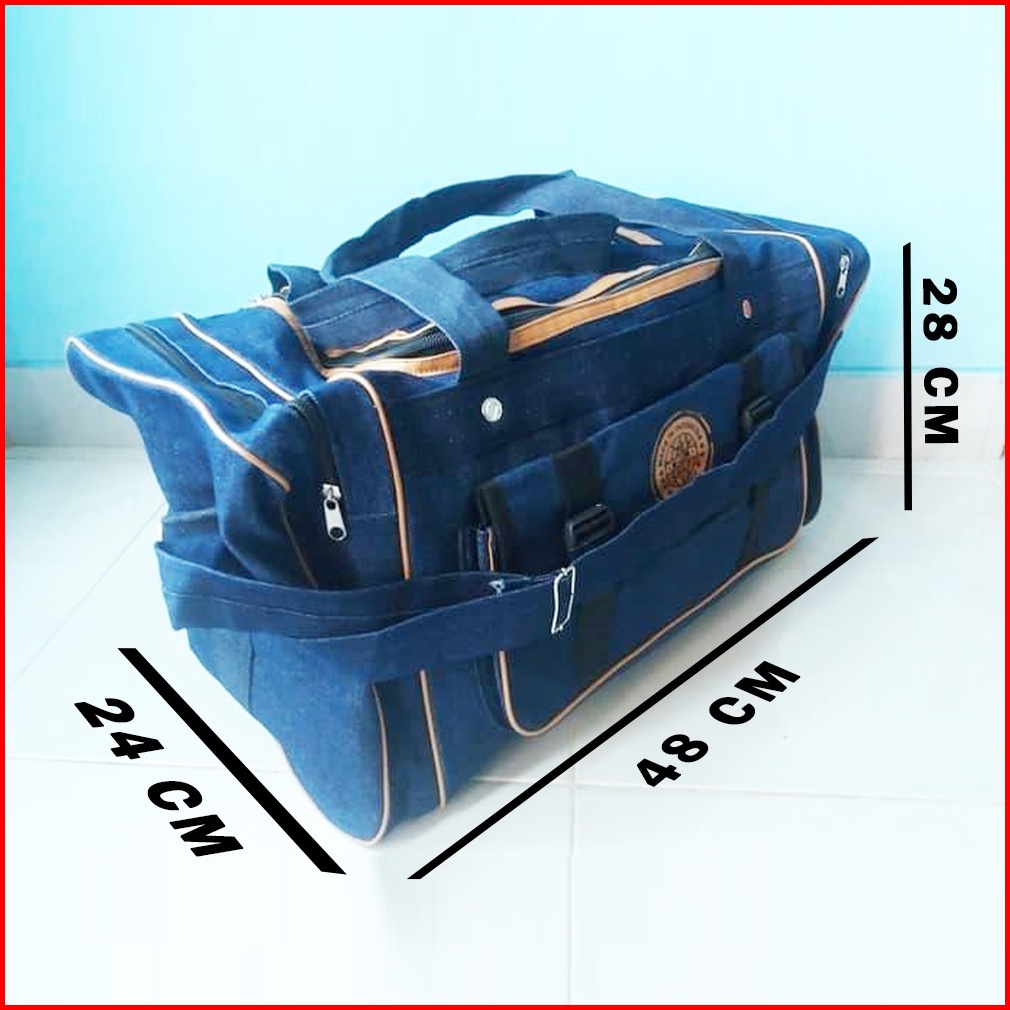 Tas Pakaian Travel Bag Besar Jumbo Bahan Jeans Denim Tebal Kuat