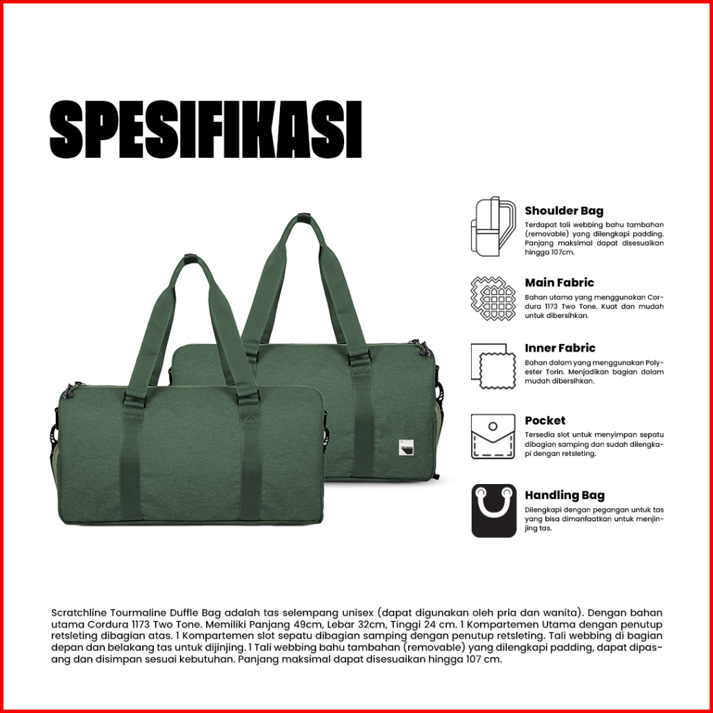 Scratchline Tourmaline Duffle Bag Olive Tas Travel Unisex