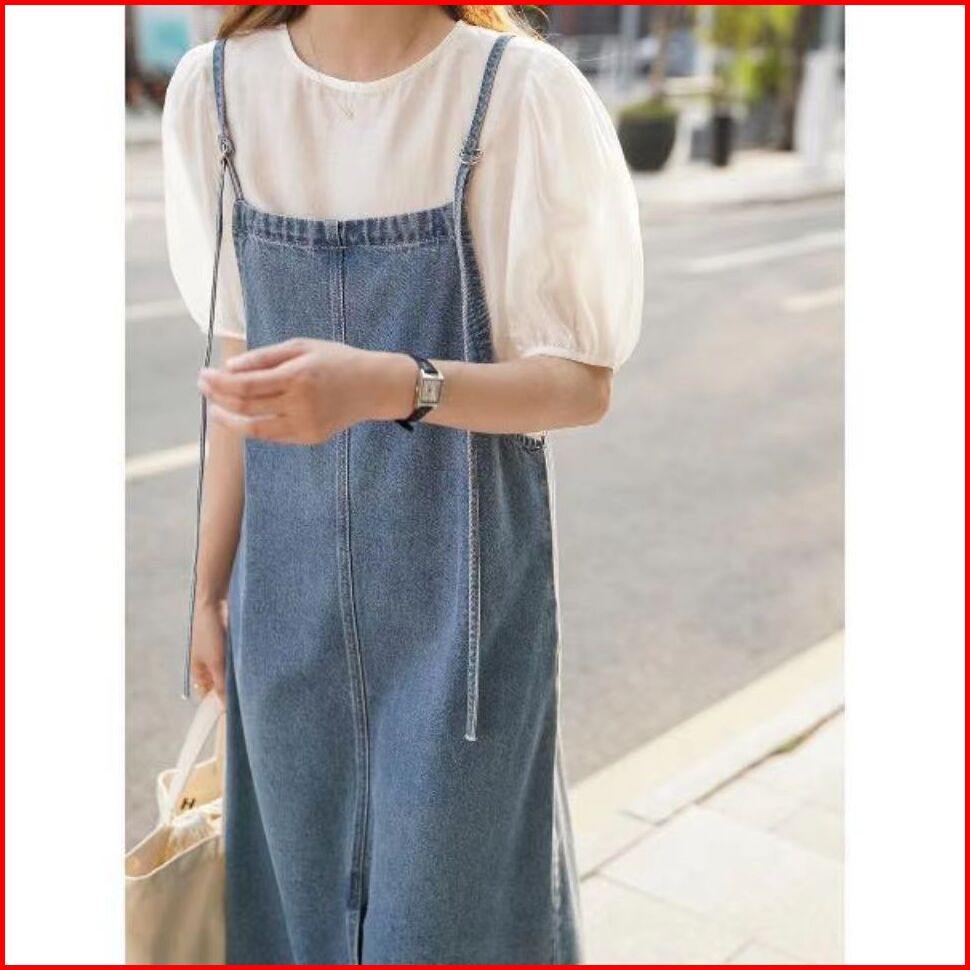 Rosella Denim Rok Belah Samping Jamsuit Rok Overall Dress Midi Dress 7 8 Rok Jumbo Bumil S M L Xl