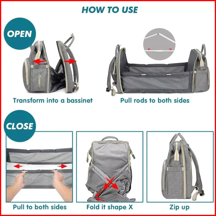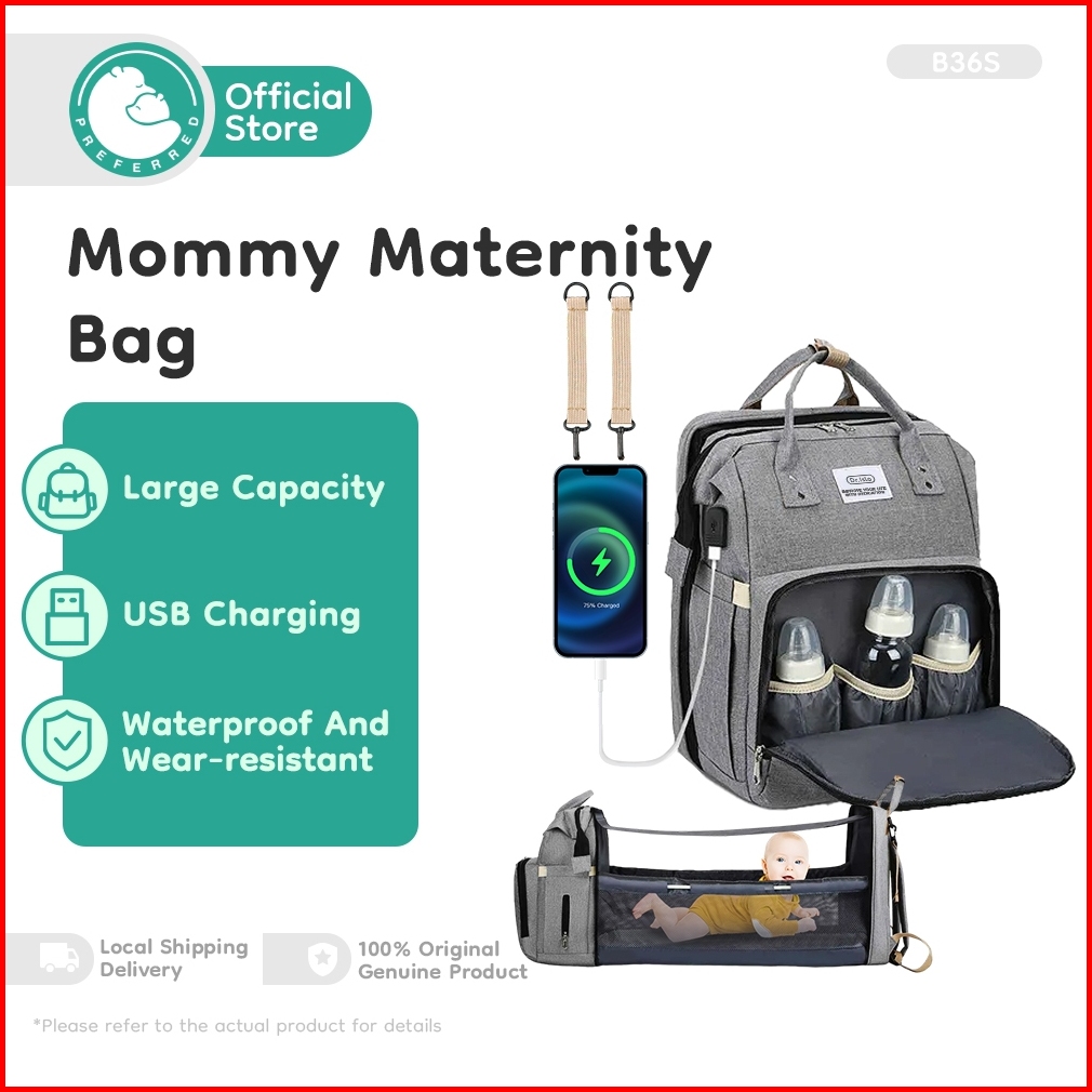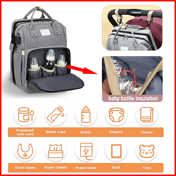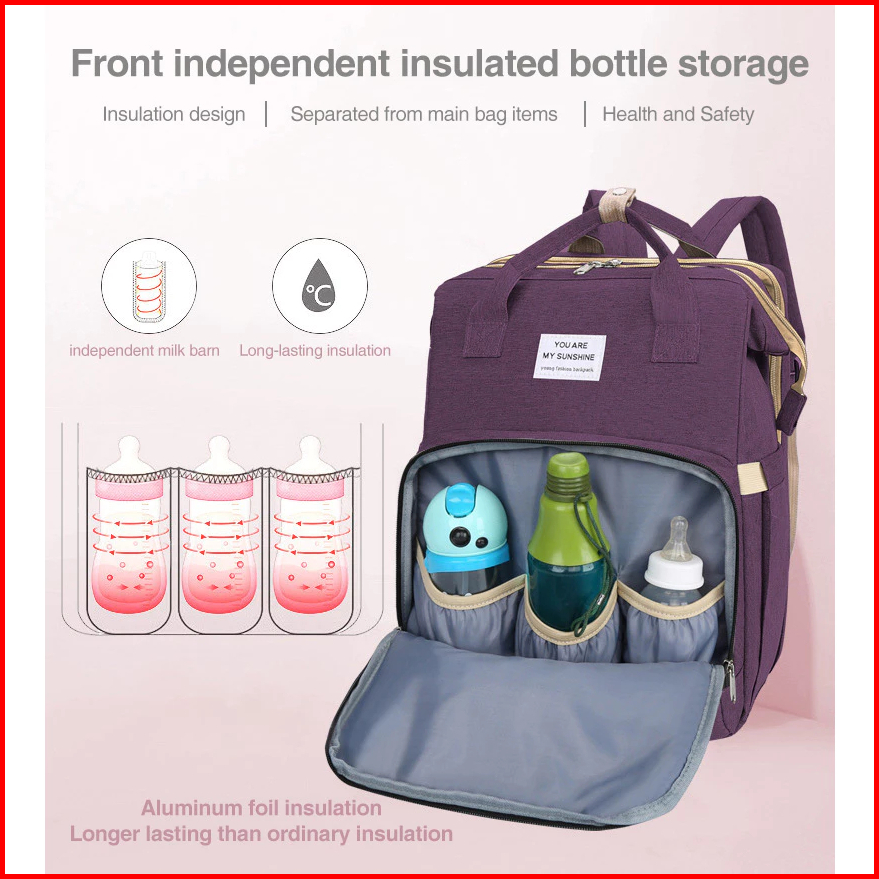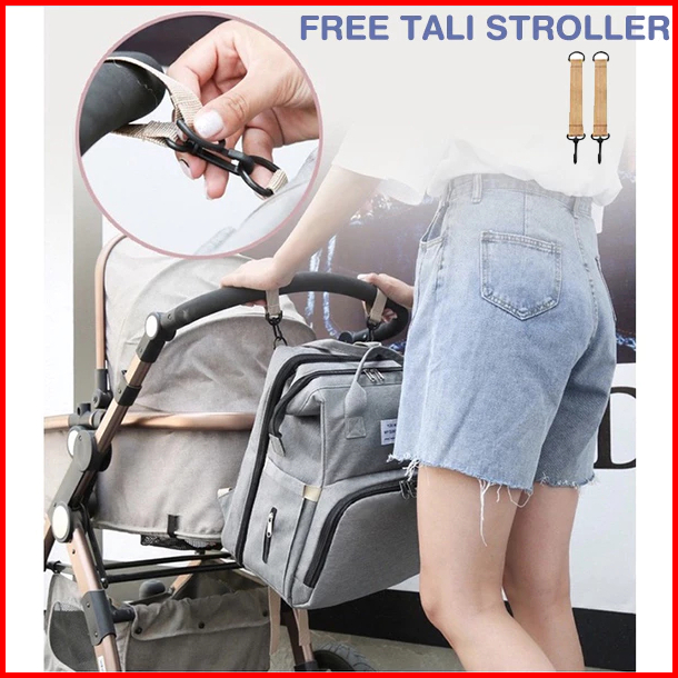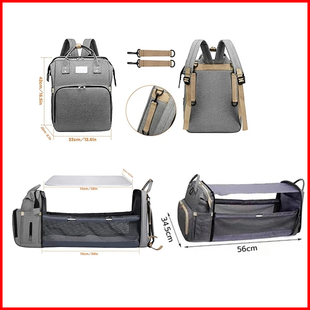 Preferred Tas Bayi Multifungsi Tempat Tidur Lipat Baby Diapers Bag Perawatan Tas Perlengkapan Ransel Backpack Canvas Ant