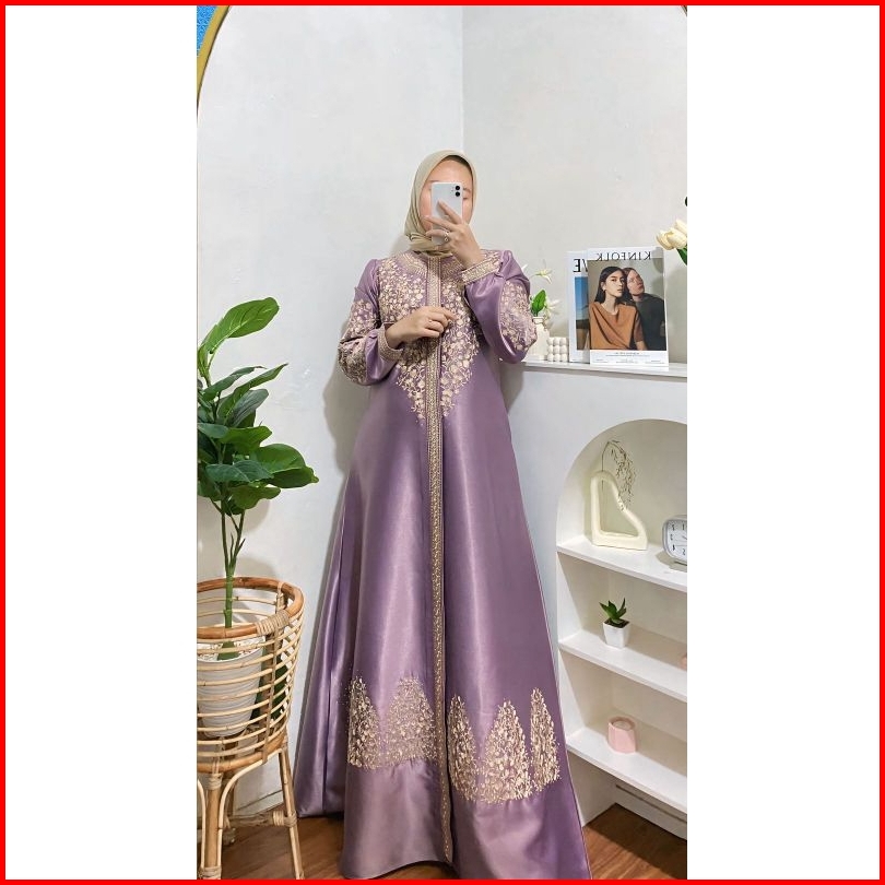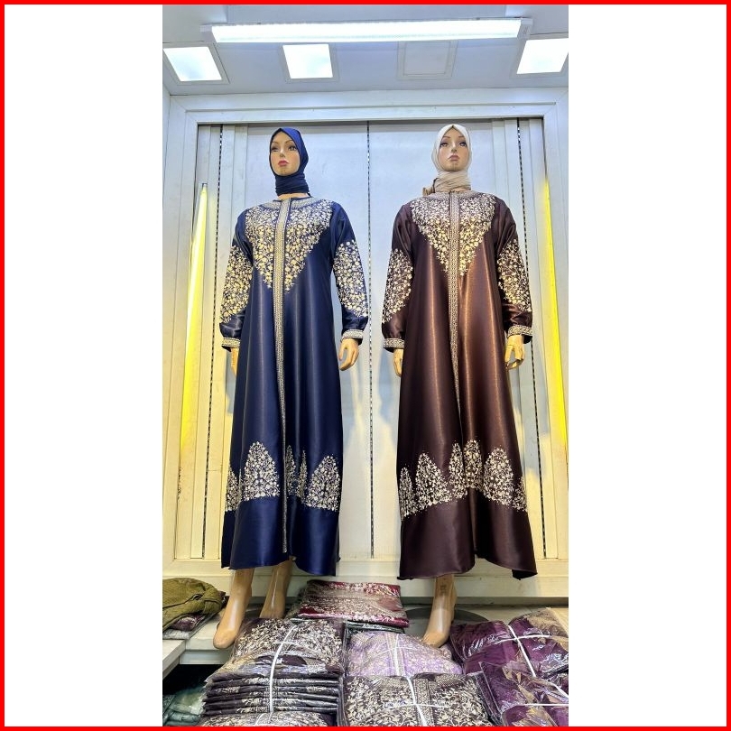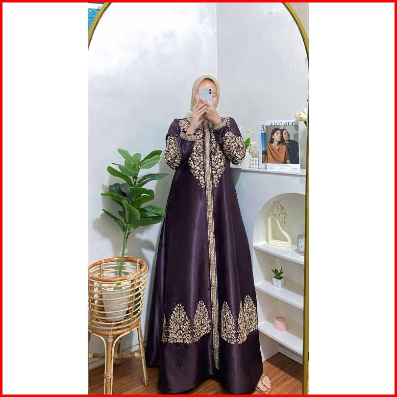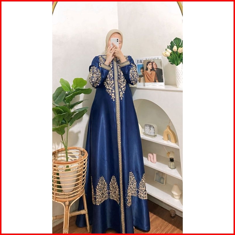 Real Pick Sesuai Foto Gamis Dress Satin Cristal Bordir Premium Gamis Muslim Wanita