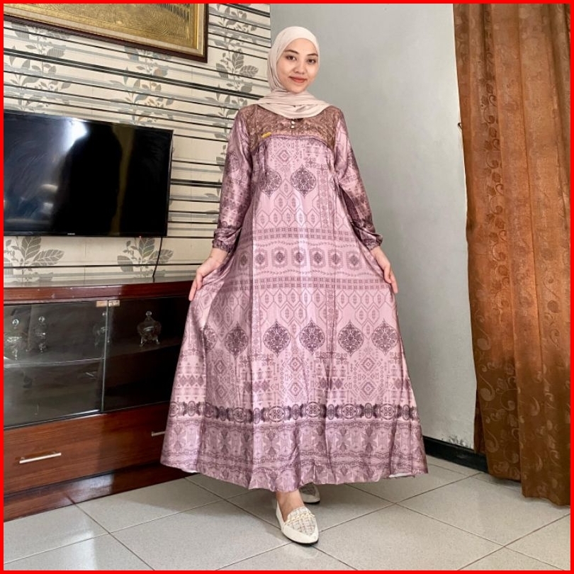 Gamis Kemala Sutra Silk Premium Ld 110 Pb 136 Muat Bb 50 - 75 Kg Gamis Motif Busui Kondangan Mewah