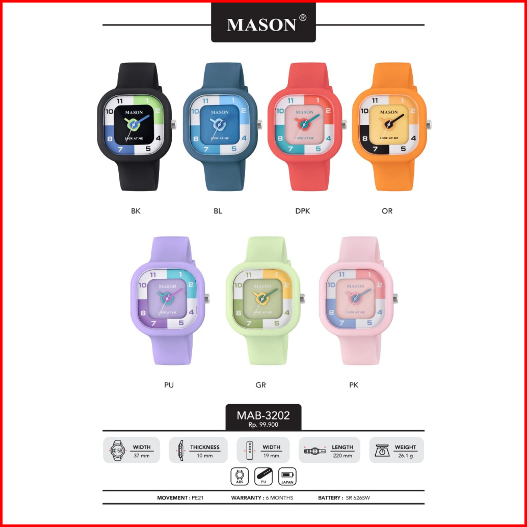 Jam Tangan Anak Laki Laki Perempuan Mason Mab 3202 Original Analog Fashion Watch Silikon Persegi