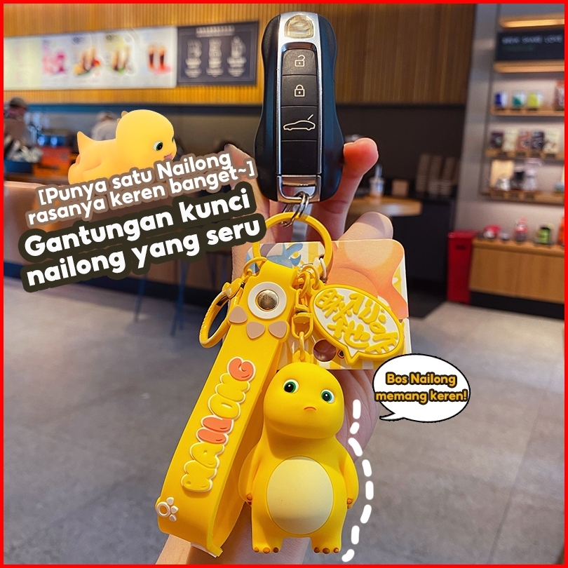 Ohsome - Mainan Anak Dewasa Ganci Gantungan Kunci Nailong Yellow Dino Dragon Keychain Nai Long Aksesoris Lucu
