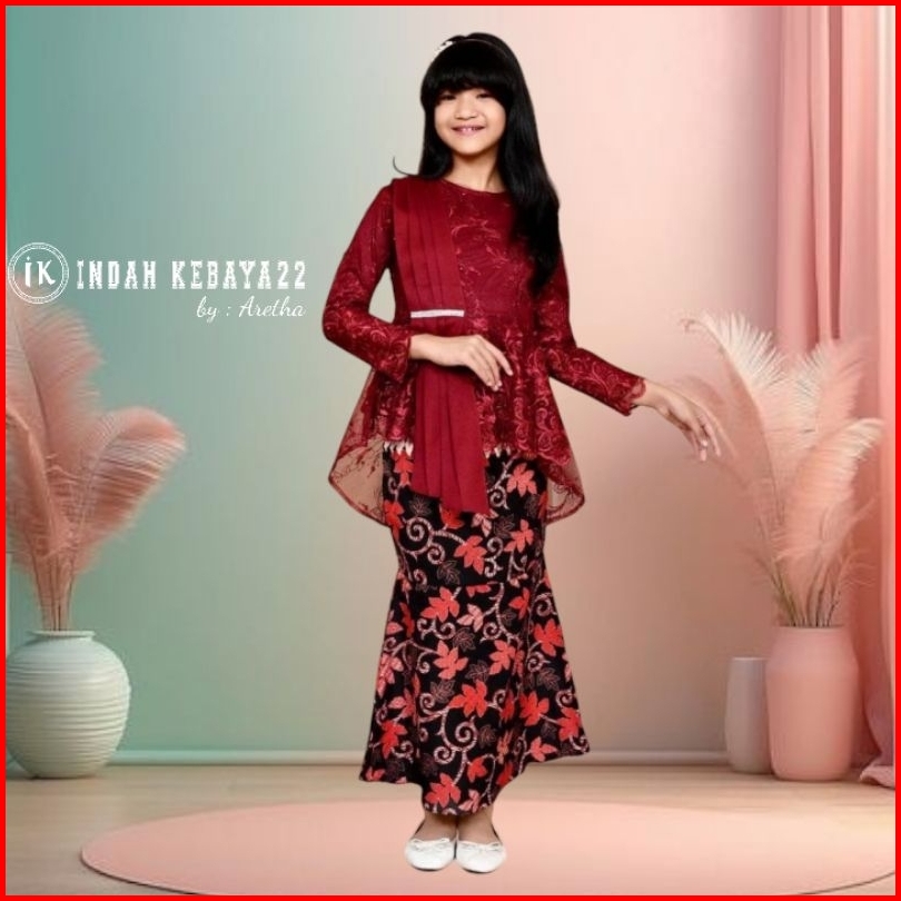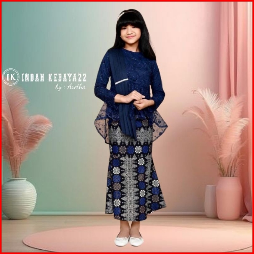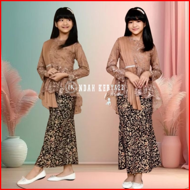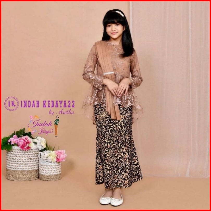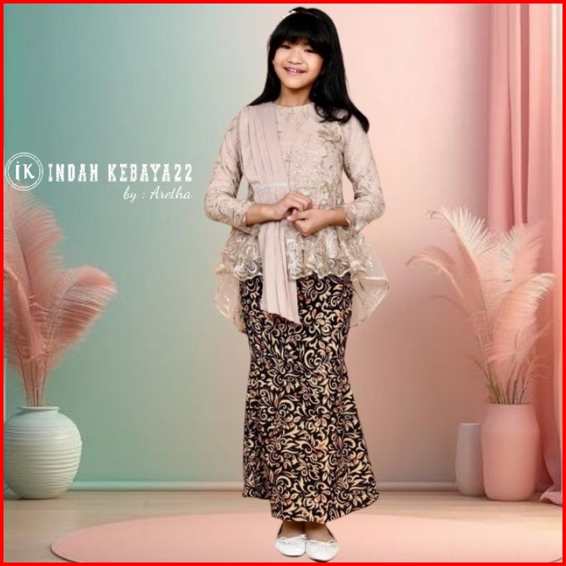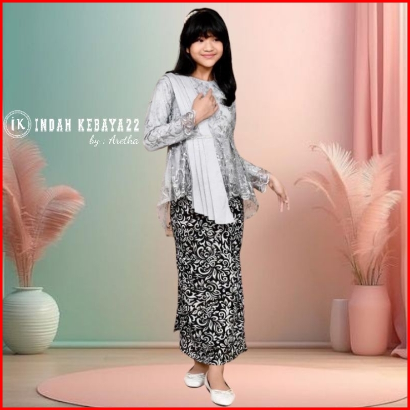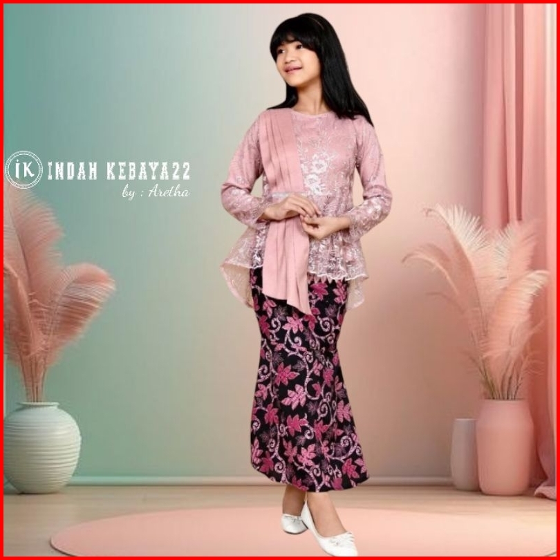 Set Kebaya Aurora Selendang Anak Perempuan Umur 3-12 Tahun Modern Brokat Tile Atasan Kebaya Wisuda Kartini Kebaya Kondan
