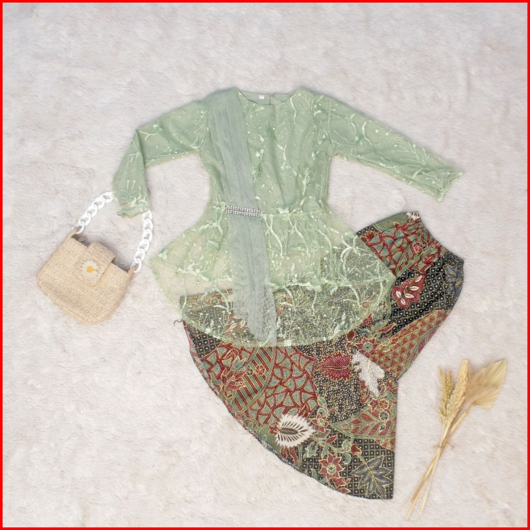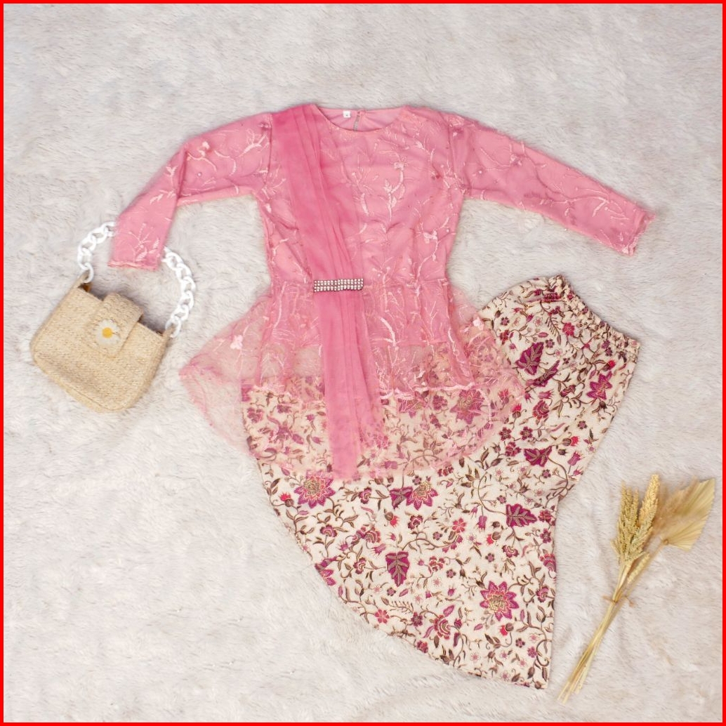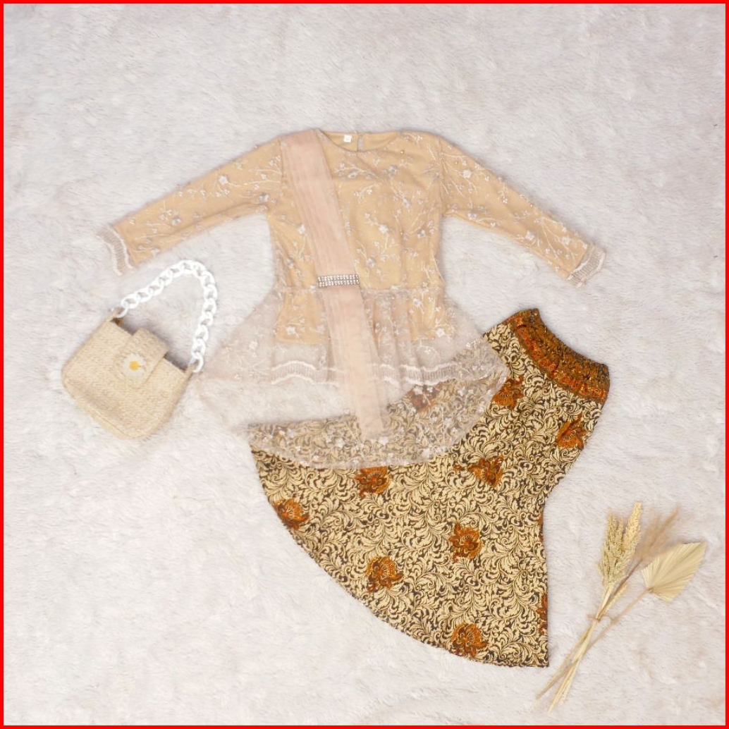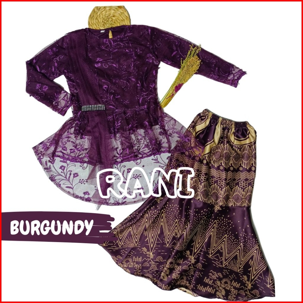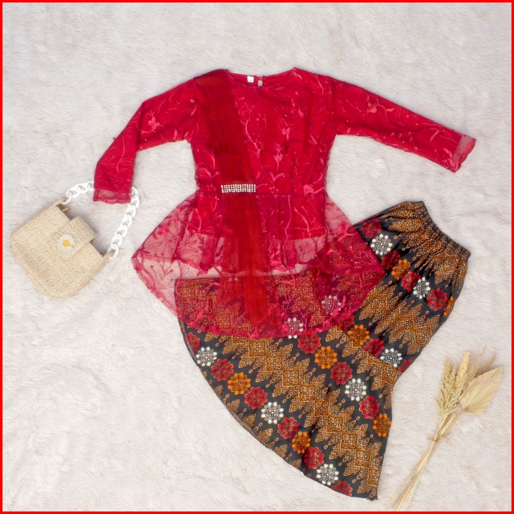 Setelan Kebaya Anak Modern Selendang Baju Brukat Lengan Panjang Rok Duyung Wisuda Tk Sd Marun