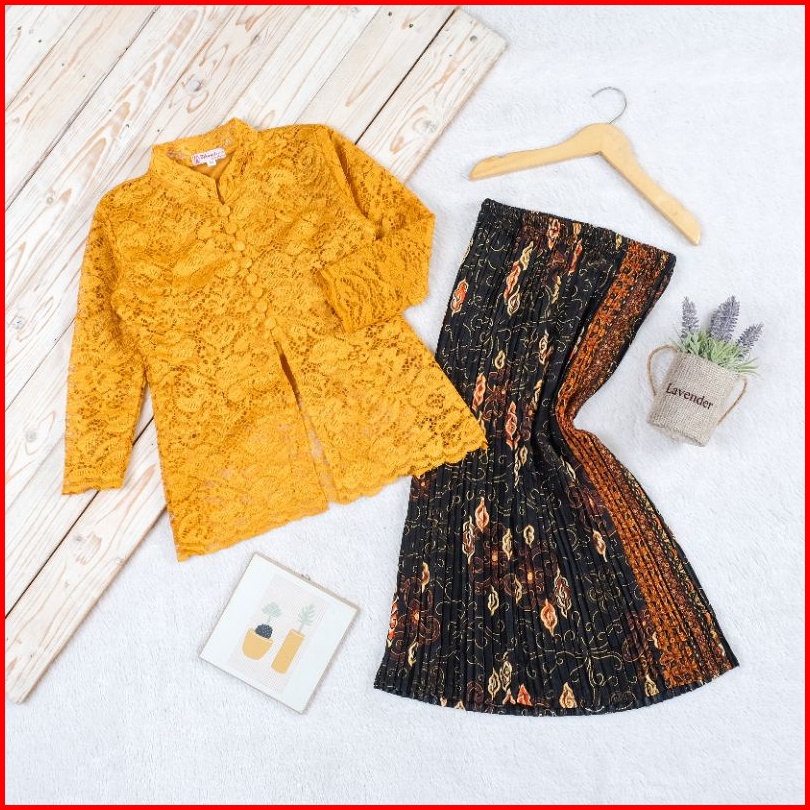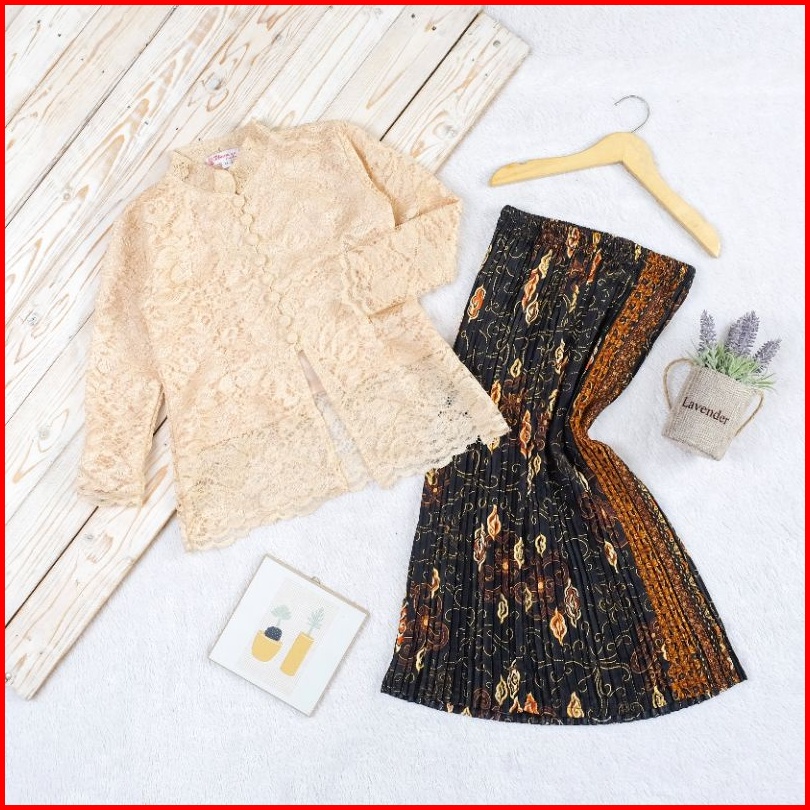 Baju Setelan Kebaya Anak Modern Lengan Panjang Kacing Rok Plisket