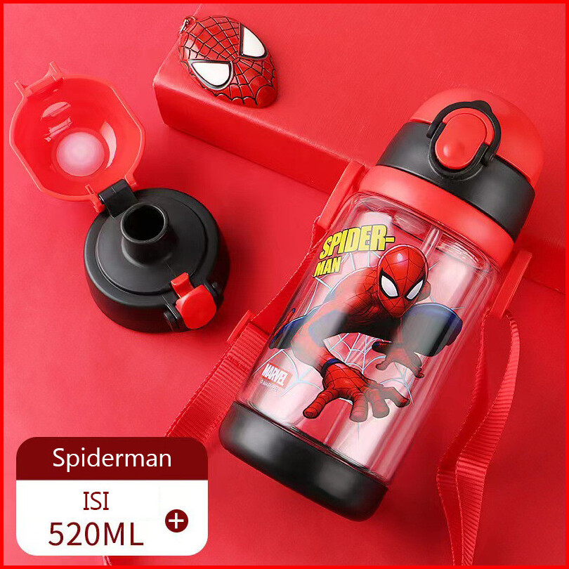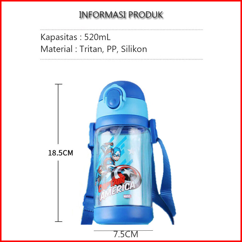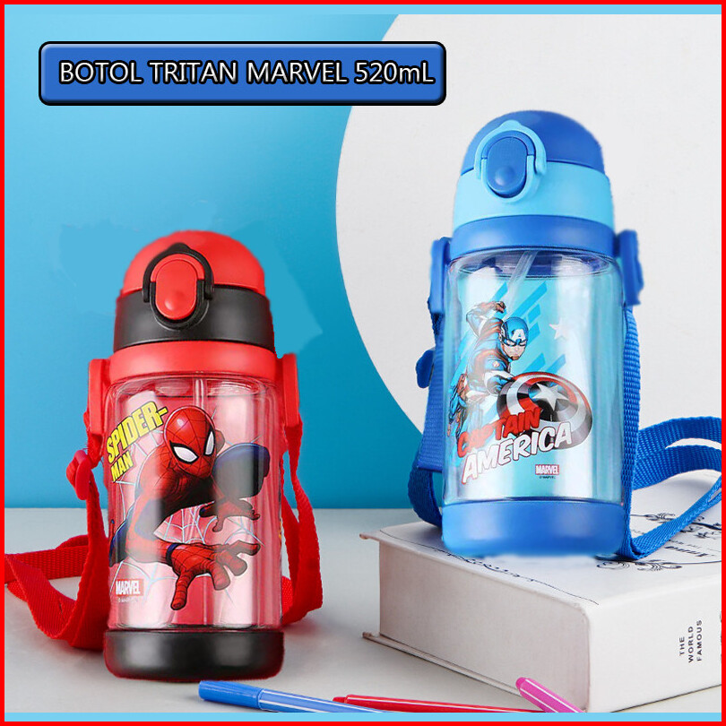 Original Marvel License Botol Minum Karakter Marvel Anak 520 Ml 2in1 Teguk Sedot Tritan Bpa Free