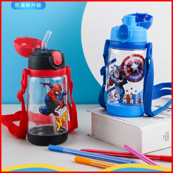 Botol Minum Anak Spiderman Captain America Bisa Teguk Dan Sedot 520ml
