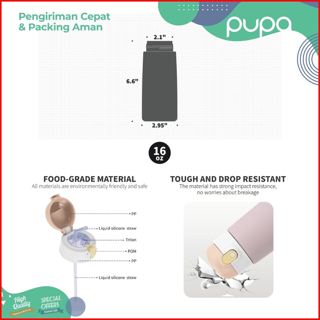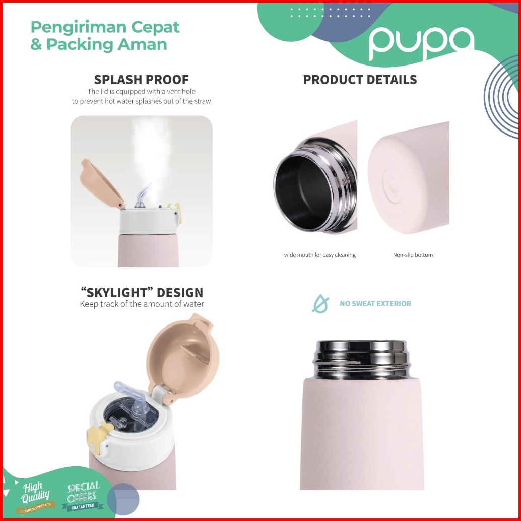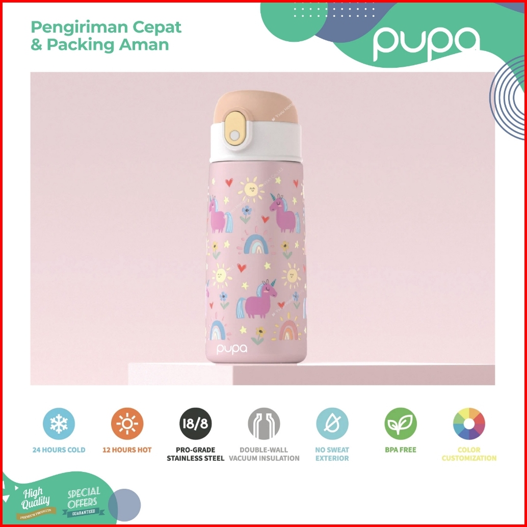 Premium Botol Air Minum Stainless Anak Sekolah Sedotan Bpa Free Kids Water Bottle School 480ml Pupa