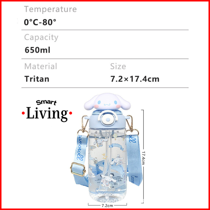 Smrtliv Bts007 - Botol Minum Anak Sekolah Sanrio Sedot Botol Minum Anak 3d Tritan 650ml Kuromi Melody Cinnamoroll